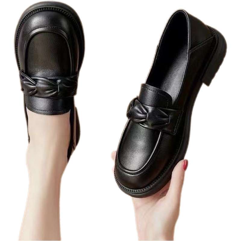 여성을 위한 영국식 작은 가죽 신발 2025 봄과 가을 새로운 스타일의 둥근 발가락 낮은 굽 싱글 슈즈 작은 여성 신발을 보여주는 슬립온 로퍼스토어 가기