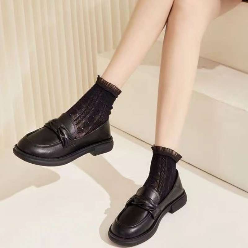 여성을 위한 영국식 작은 가죽 신발 2025 봄과 가을 새로운 스타일의 둥근 발가락 낮은 굽 싱글 슈즈 작은 여성 신발을 보여주는 슬립온 로퍼