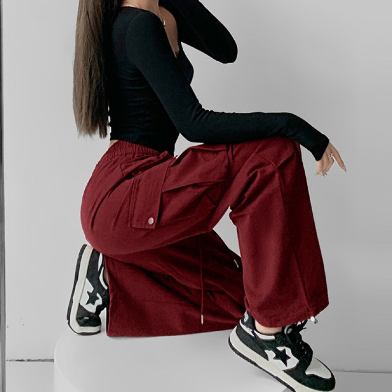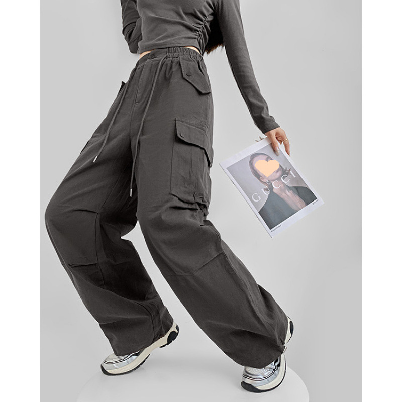 메일라드 아메리칸 레트로 오버올 여성 봄, 가을 루즈한 낙하산 하이킹 바지 캐주얼 와이드 레그 스포츠 바지