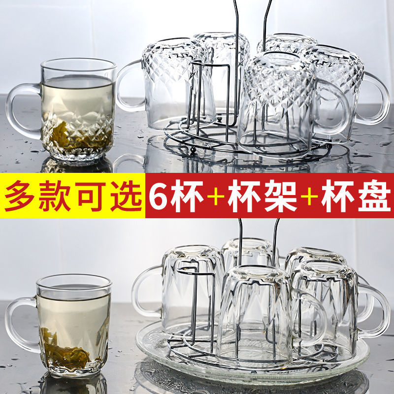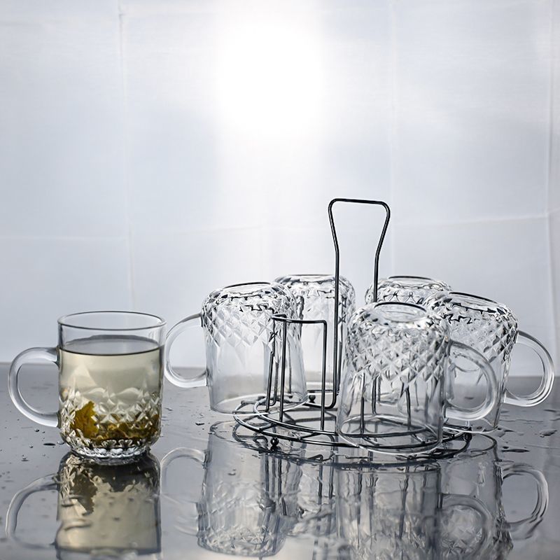 컵홀더가 포함된 가정용 유리컵세트, 고급스러운 물컵, 내열투명 찻잔, 손잡이가 있는 마시는 컵