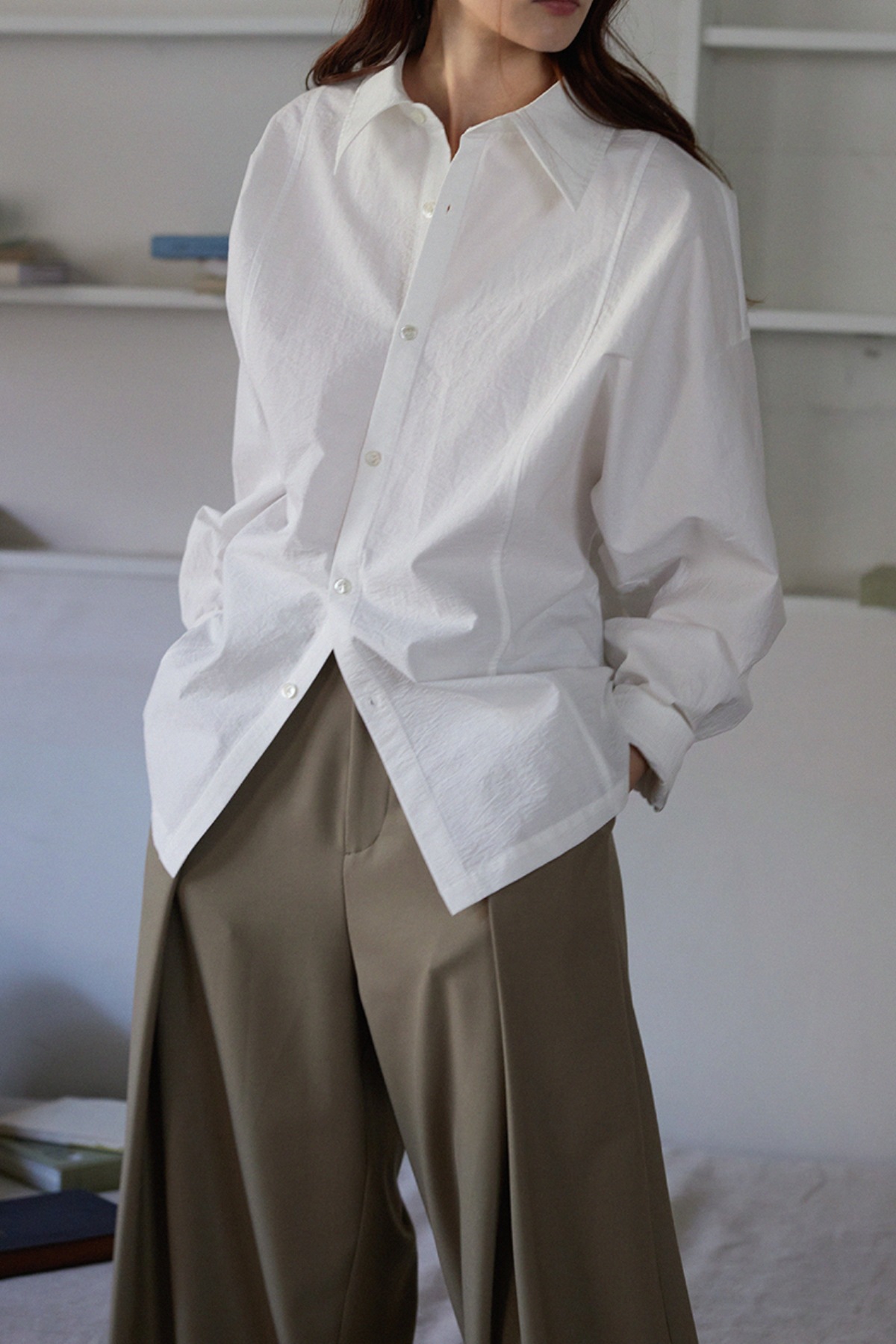 프렌치 스타일 버튼 백 웨이스트 슬리밍 화이트 셔츠 여성 봄, 가을 새로운 루즈한 통근 다용도 셔츠 탑스토어 가기