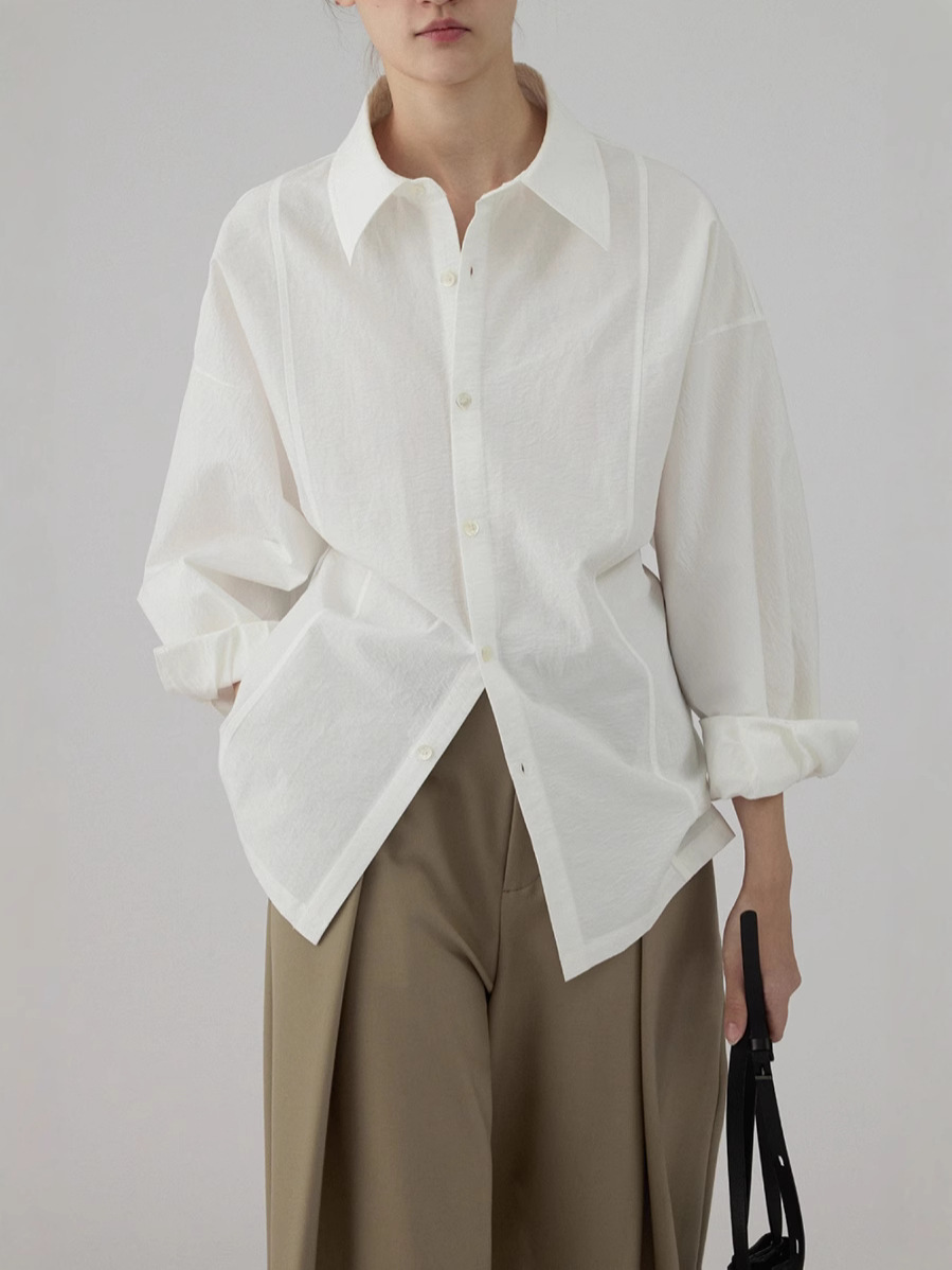 프렌치 스타일 버튼 백 웨이스트 슬리밍 화이트 셔츠 여성 봄, 가을 새로운 루즈한 통근 다용도 셔츠 탑
