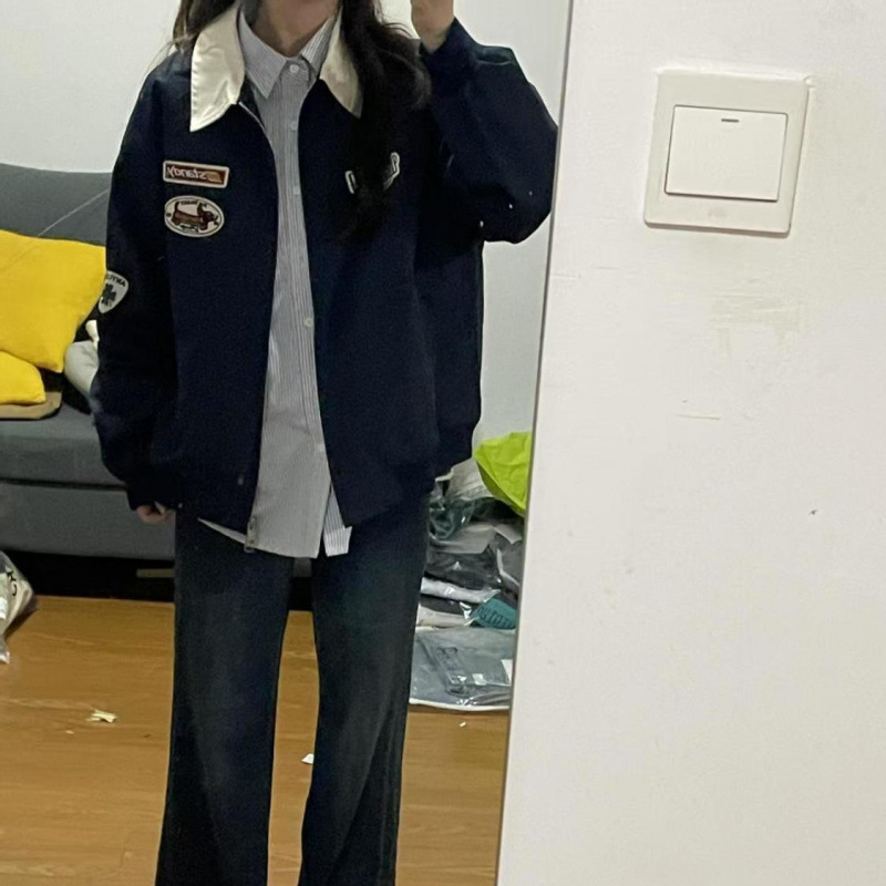 봄과 가을 여성을위한 미국 복고풍 옷깃 비행 재킷 새로운 커플 느슨한 디자인 봄 야구 재킷스토어 가기
