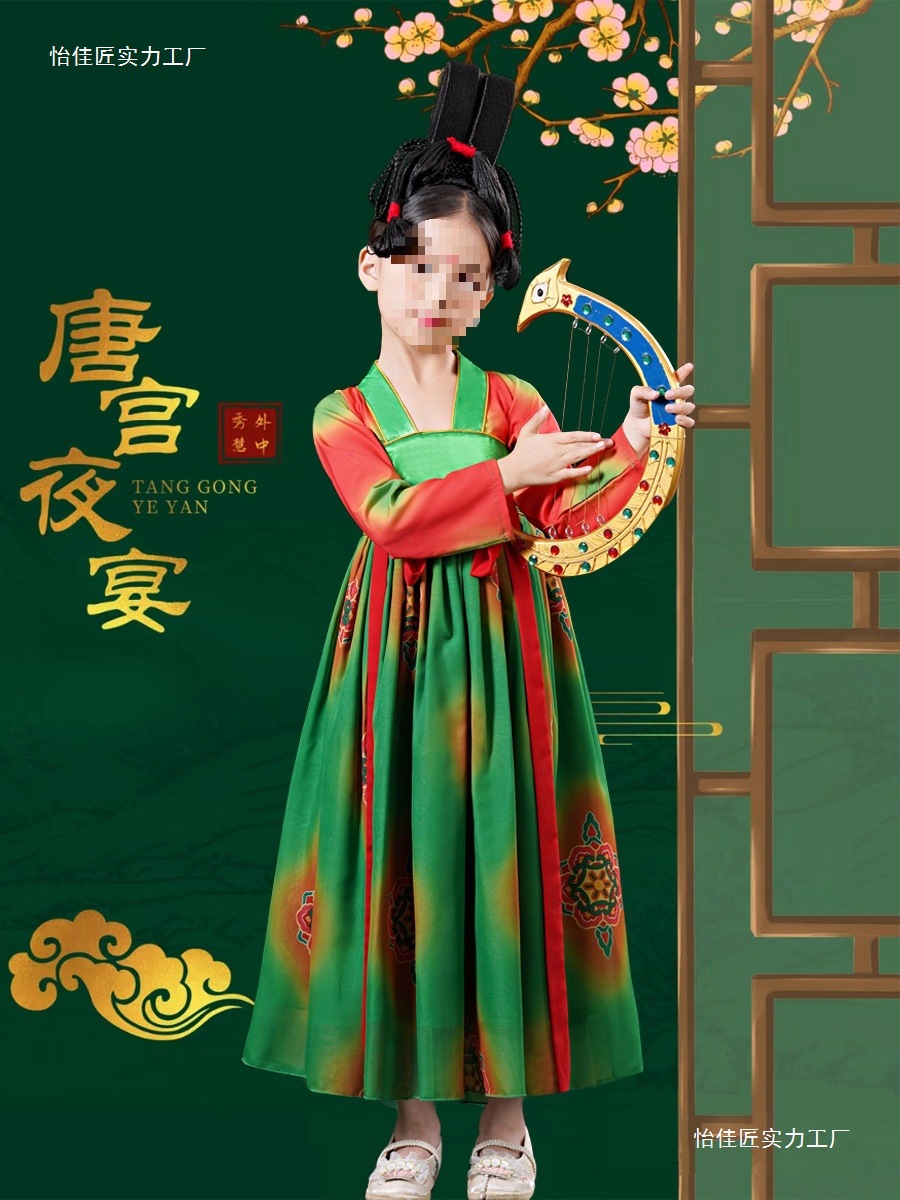 당나라 궁전 야간 연회 어린이 공연 의상 당나라 제작 당나라 인형 스커트 소녀 한복 요정 스커트 둔황 댄스 고대 스타일 레드스토어 가기