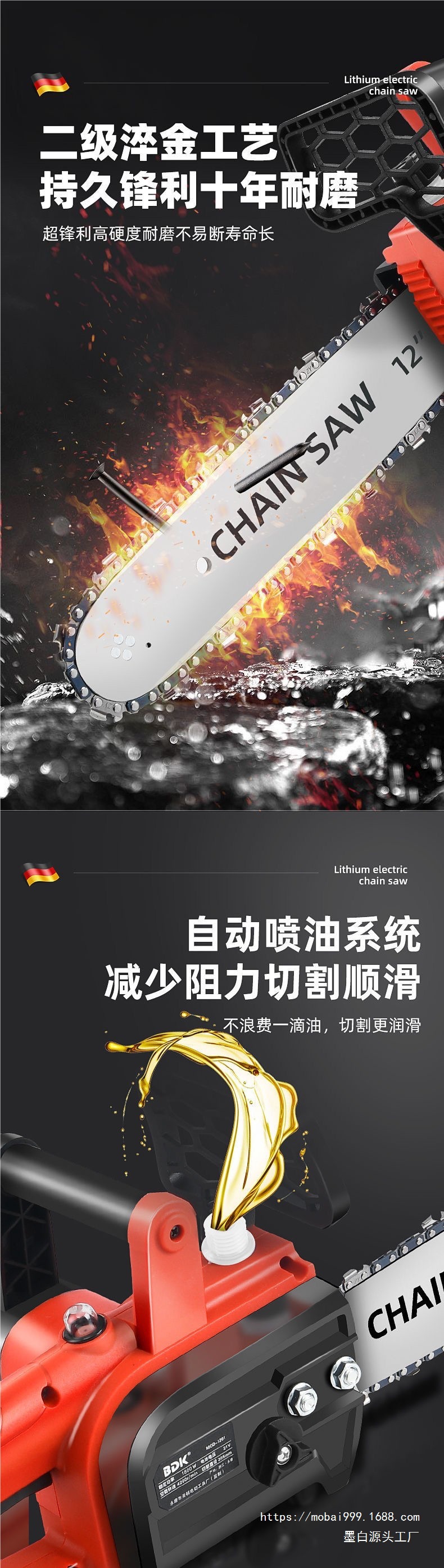 • 긴 배터리 수명 12800H-8A] 20셀 리튬 배터리_독일 [12inch 브러시리스 모터] + 배터리 1개 + 체인 2개