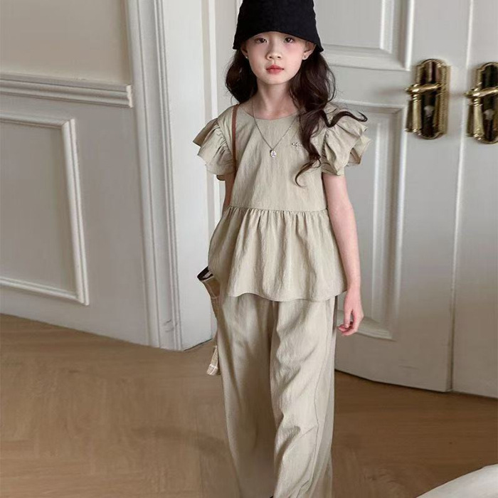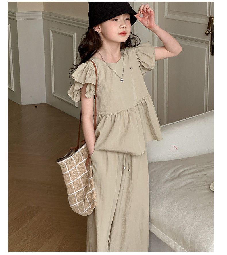 여아 정장 2025 여름 신작 패셔너블한 짧은 소매 와이드 팬츠, 중대형 아동용 다용도 트렌디 투피스 세트