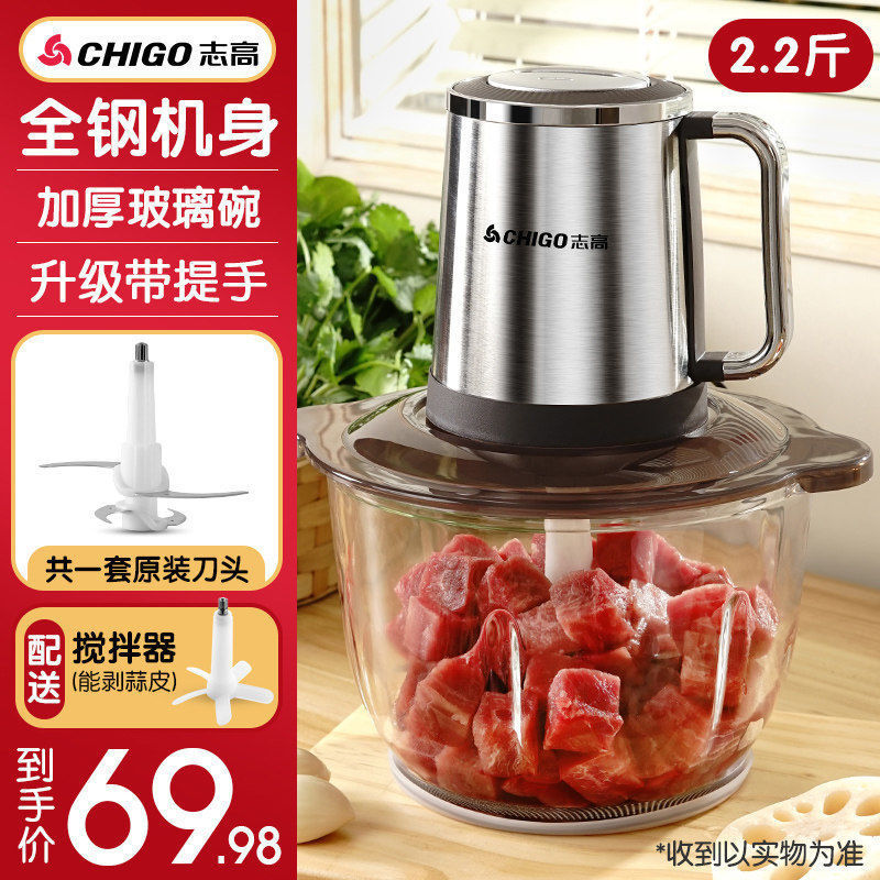 Chigo 고기 분쇄기 가정용 다기능 소형 전기 마늘 분쇄기 고기 다지기 야채 및 고추 요리스토어 가기