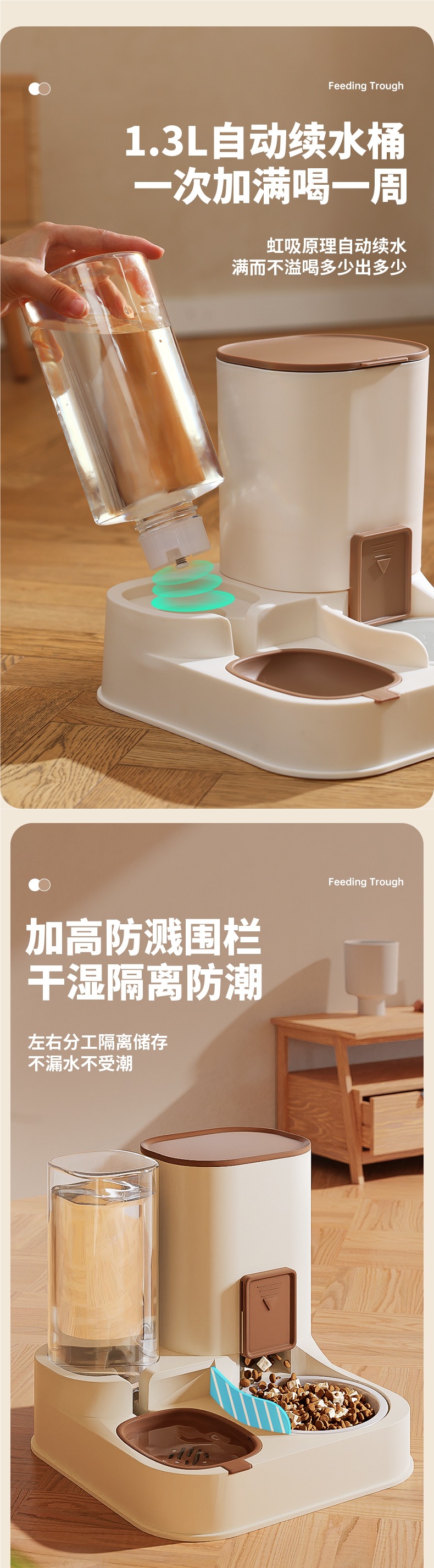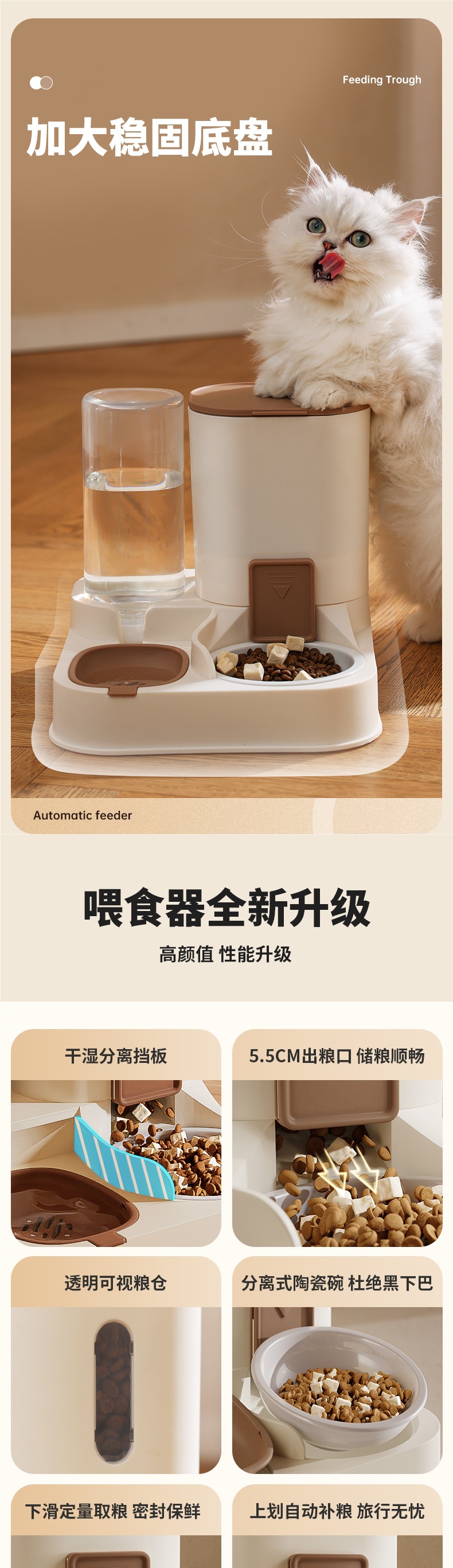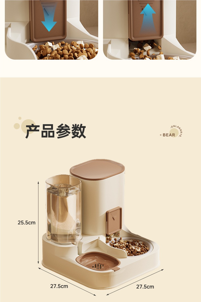 • 업그레이드된 조절 가능한 정량 물과 음식 일체형 그릇 - 카키 브라운