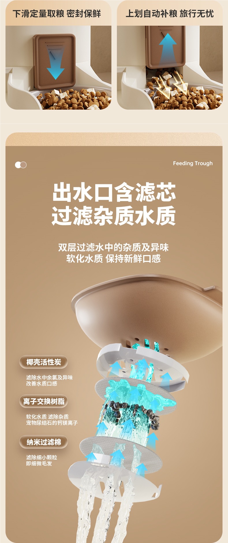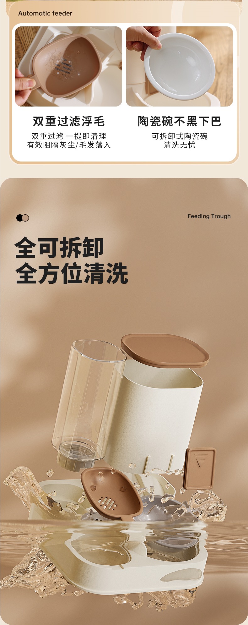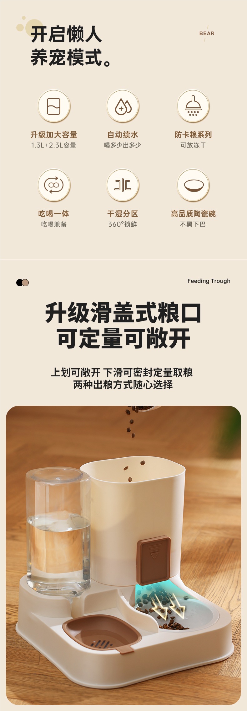• 업그레이드된 조절 가능한 정량 물과 음식 일체형 그릇 - 카키 브라운