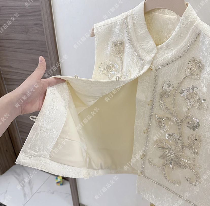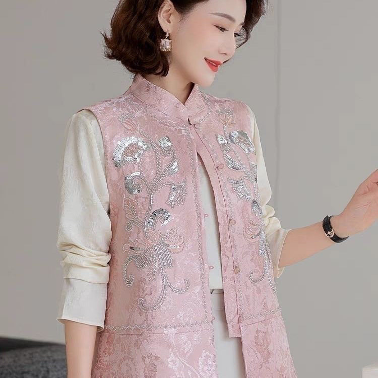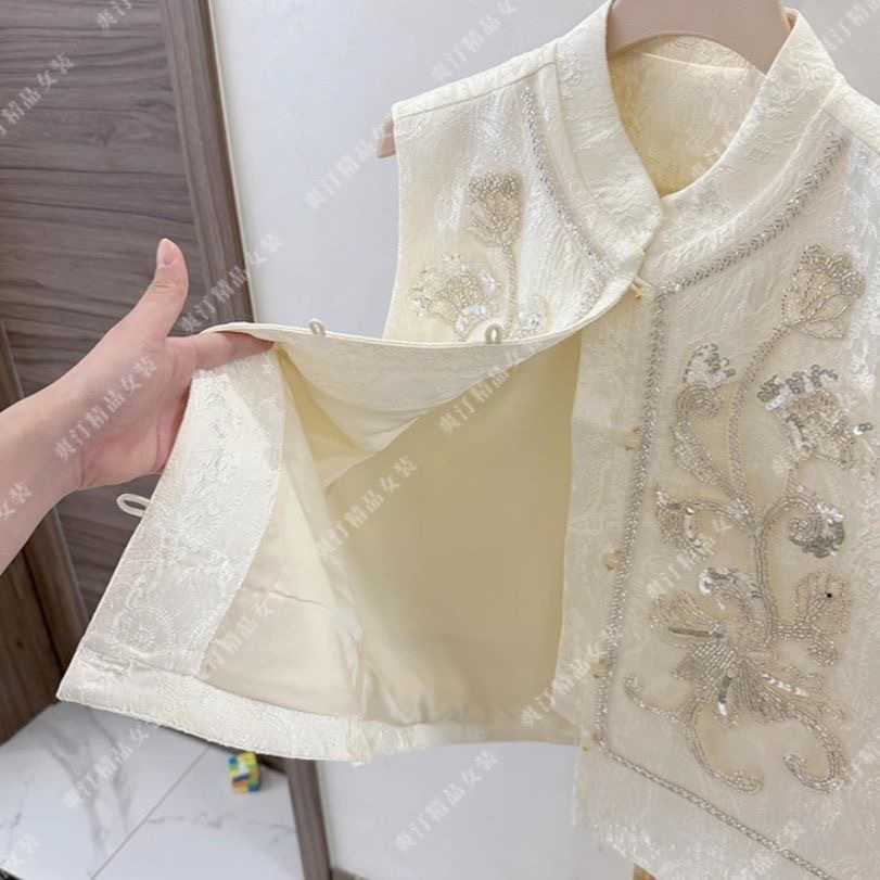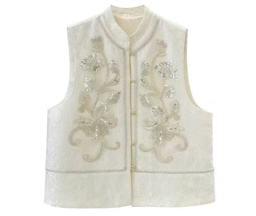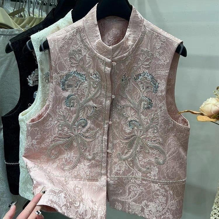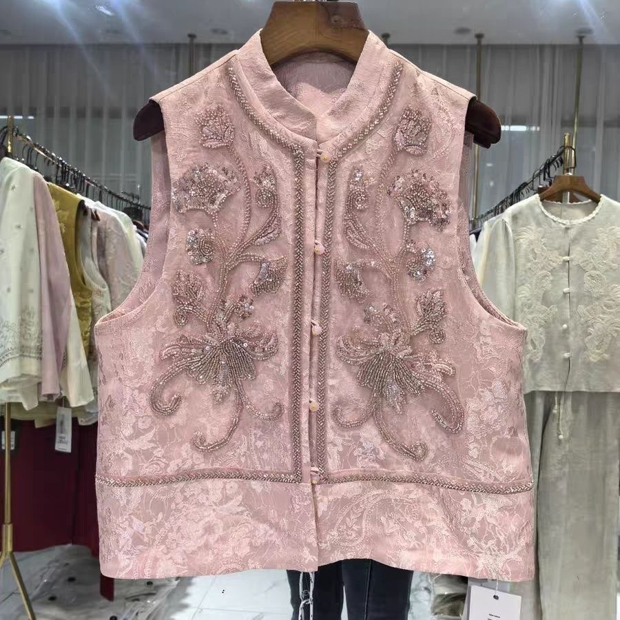 2025 하이 엔드 새로운 중국 스타일 구슬 장식 스팽글 중국 스타일 조끼 중공업 이른 봄 새로운 스타일 자수 기질 느슨한 조끼 여성