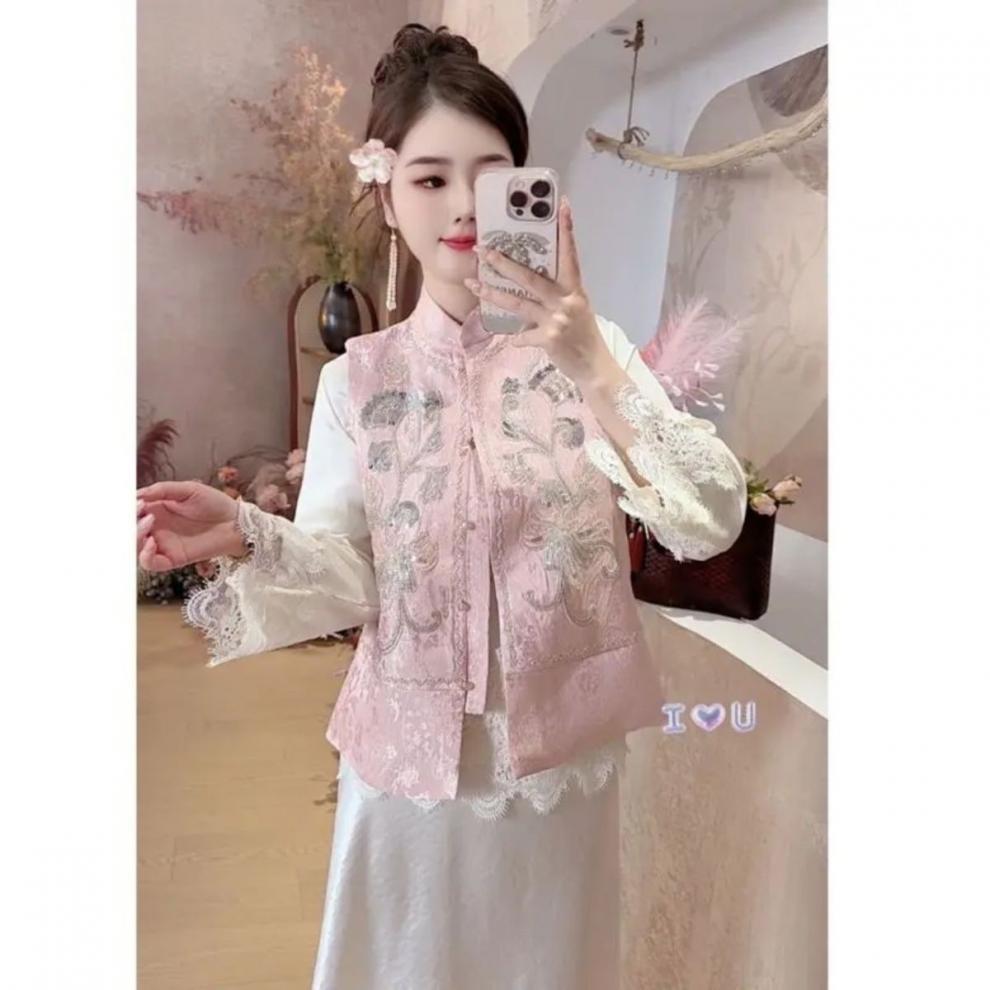 2025 하이 엔드 새로운 중국 스타일 구슬 장식 스팽글 중국 스타일 조끼 중공업 이른 봄 새로운 스타일 자수 기질 느슨한 조끼 여성스토어 가기