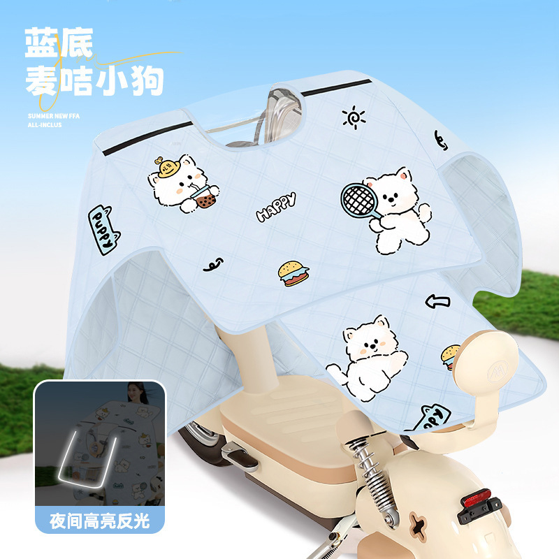 • [슬릿+보온&자외선차단+야간반사+수납까지 모두 포함] 파란색 배경 밀카드 강아지₲