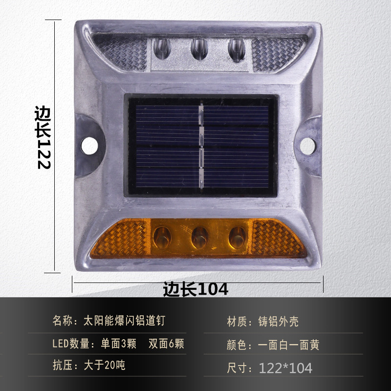 태양광 도로 말뚝 LED 플래시 라이트 주조 알루미늄 도로 안내 경고 표지판 지상 돌출 도로 표지판은 항상 밝고 깜박입니다.