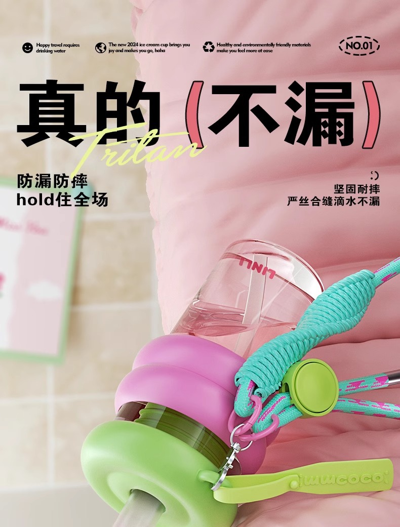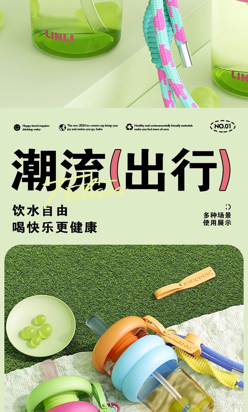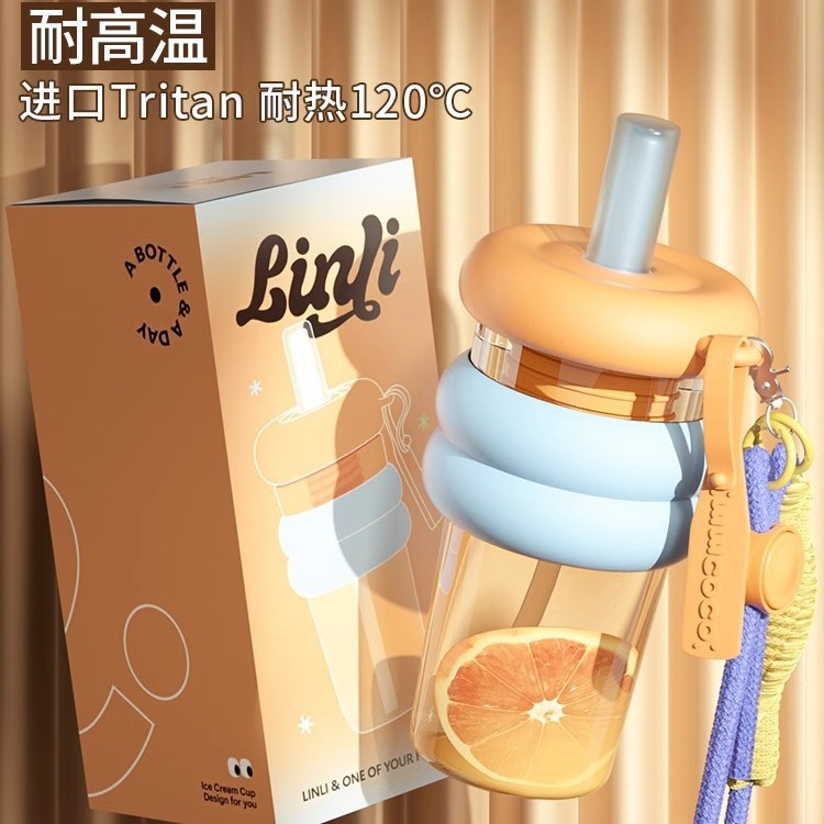 여자를위한 트라이탄 워터 컵 대용량 및 고가치 여름 휴대용 밀짚 컵 2025 새로운 스포츠 톤 컵스토어 가기