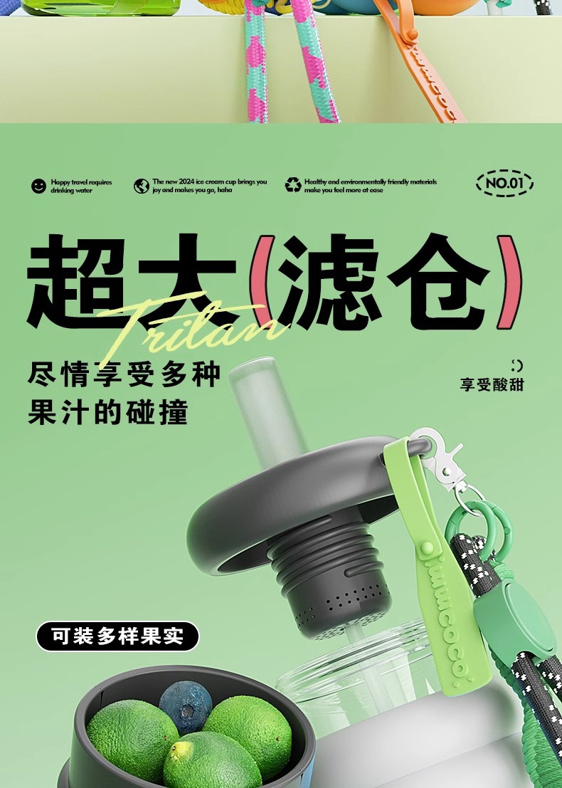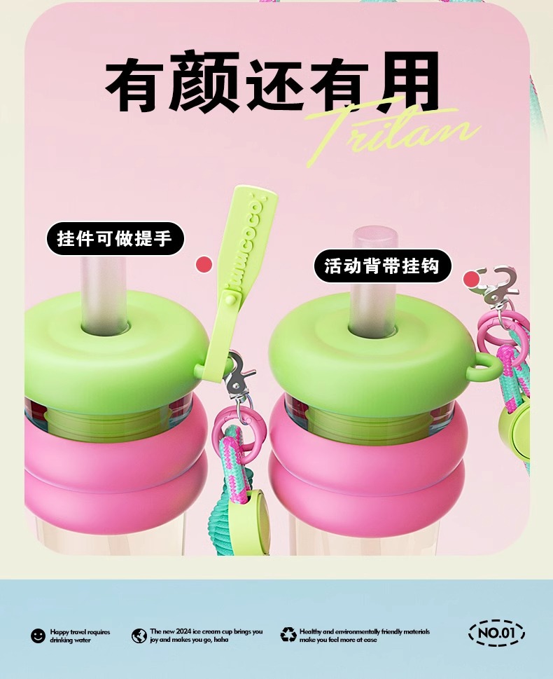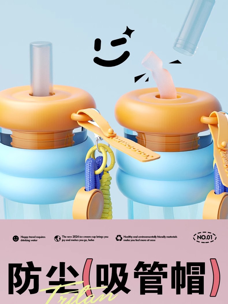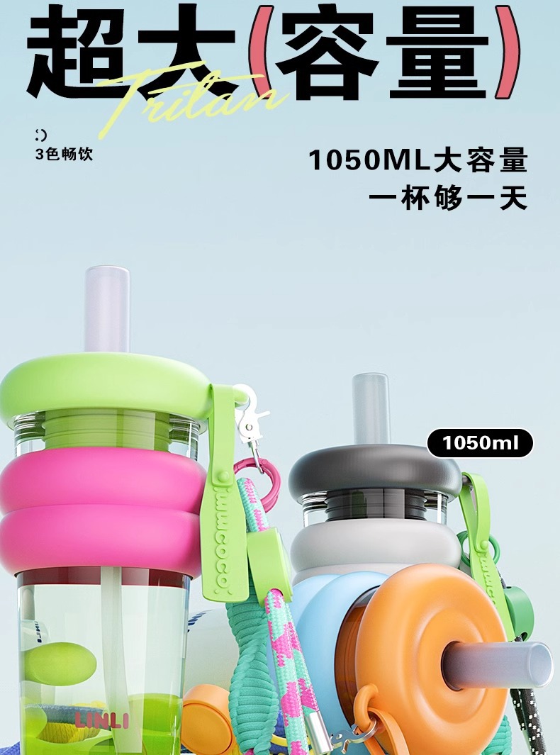 여자를위한 트라이탄 워터 컵 대용량 및 고가치 여름 휴대용 밀짚 컵 2025 새로운 스포츠 톤 컵