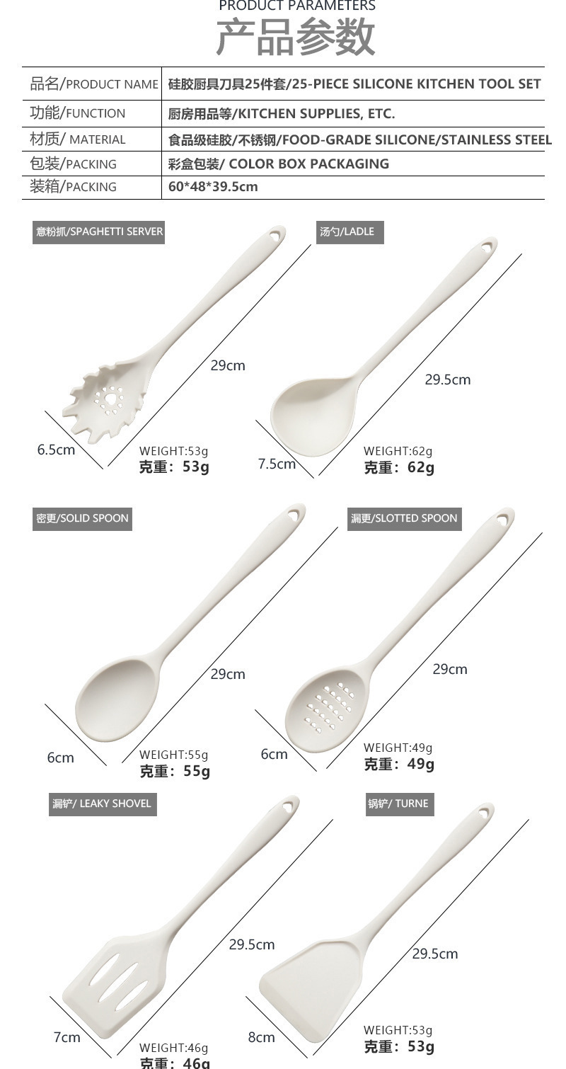실리콘 주방 세트 주방 25피스 고온 저항 주걱 수프 스푼 요리 세트 공장 직접 도매스토어 가기