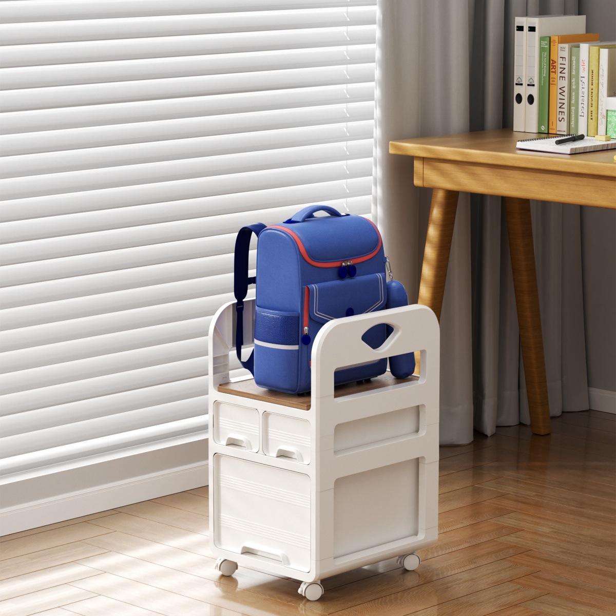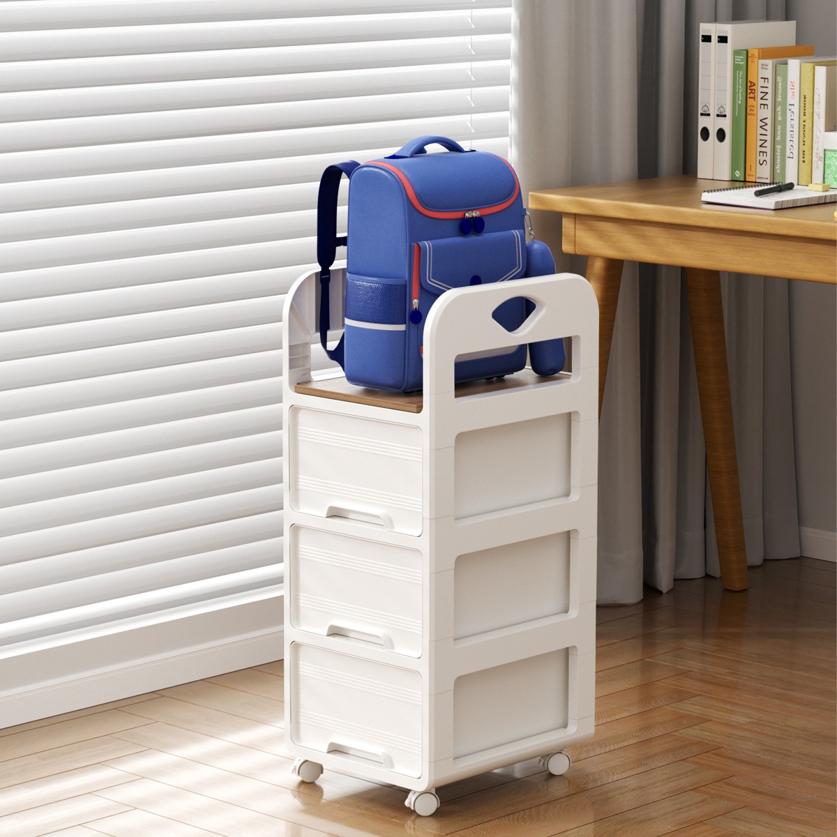 가방, 사무용품, 트롤리, 워크스테이션 아래에 보관할 수 있는 이동식 다층 보관 캐비닛스토어 가기