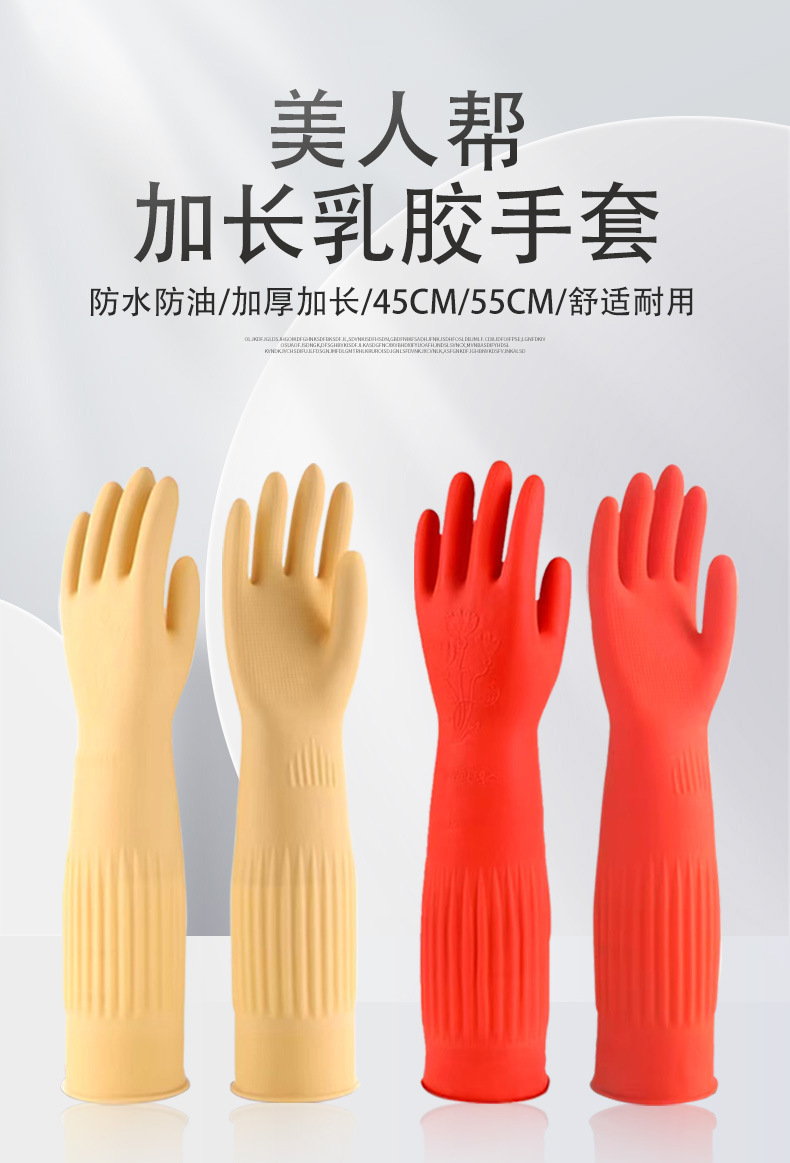 Meirenbang 방수 및 미끄럼 방지 중간 길이 고무 장갑 내마모성 및 내구성 식기 세척 세탁 세차 라텍스 가사 장갑스토어 가기