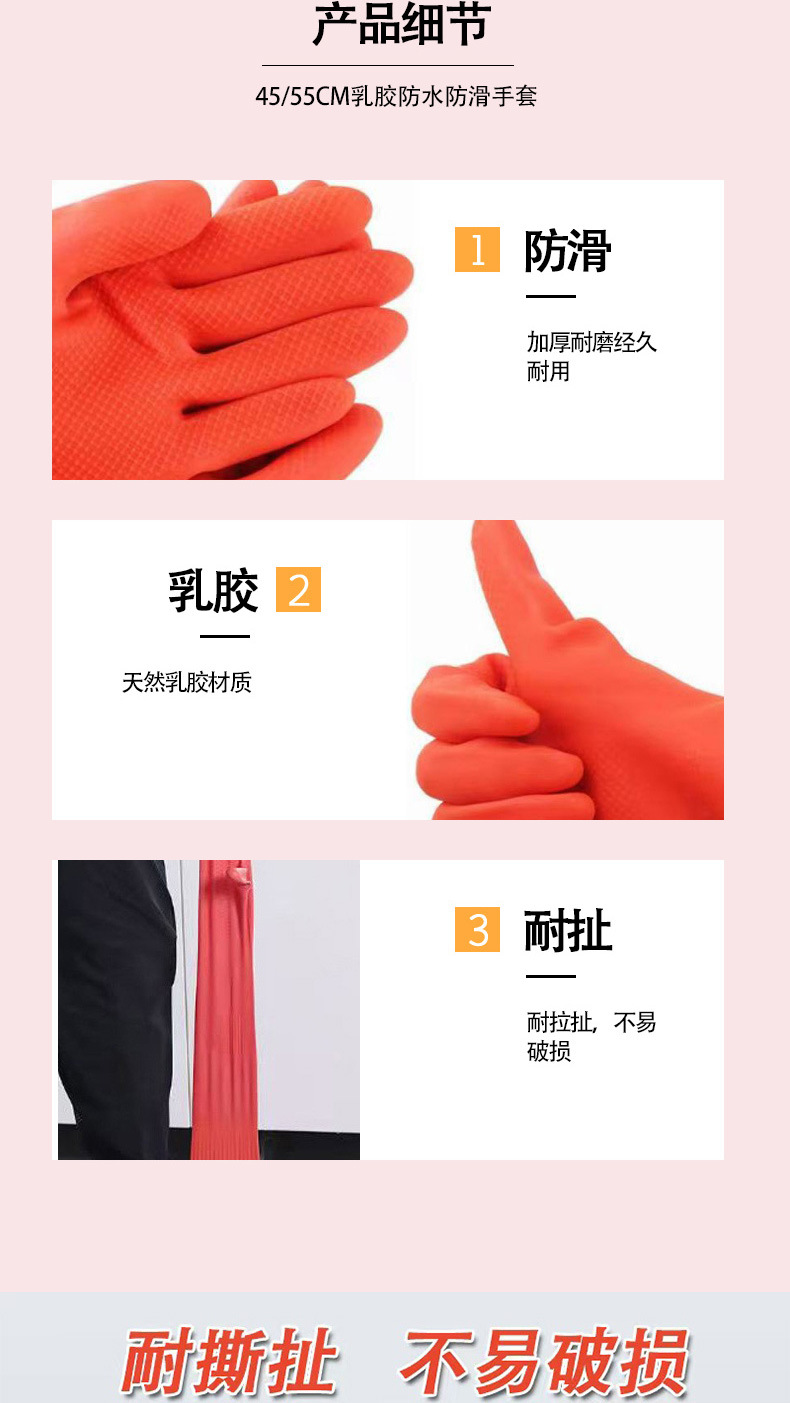Meirenbang 방수 및 미끄럼 방지 중간 길이 고무 장갑 내마모성 및 내구성 식기 세척 세탁 세차 라텍스 가사 장갑