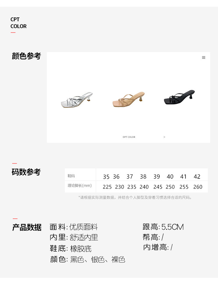 여성을 위한 틈새 슬림 스트랩 스퀘어 토 오픈 토 하이힐 샌들 2025 봄 여름 신상 슬림 힐 슬리퍼