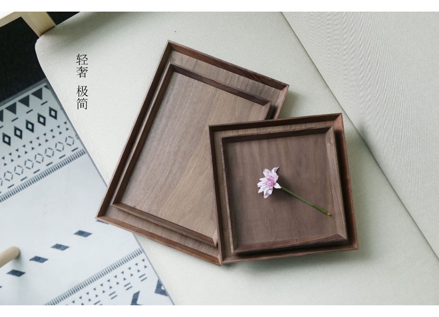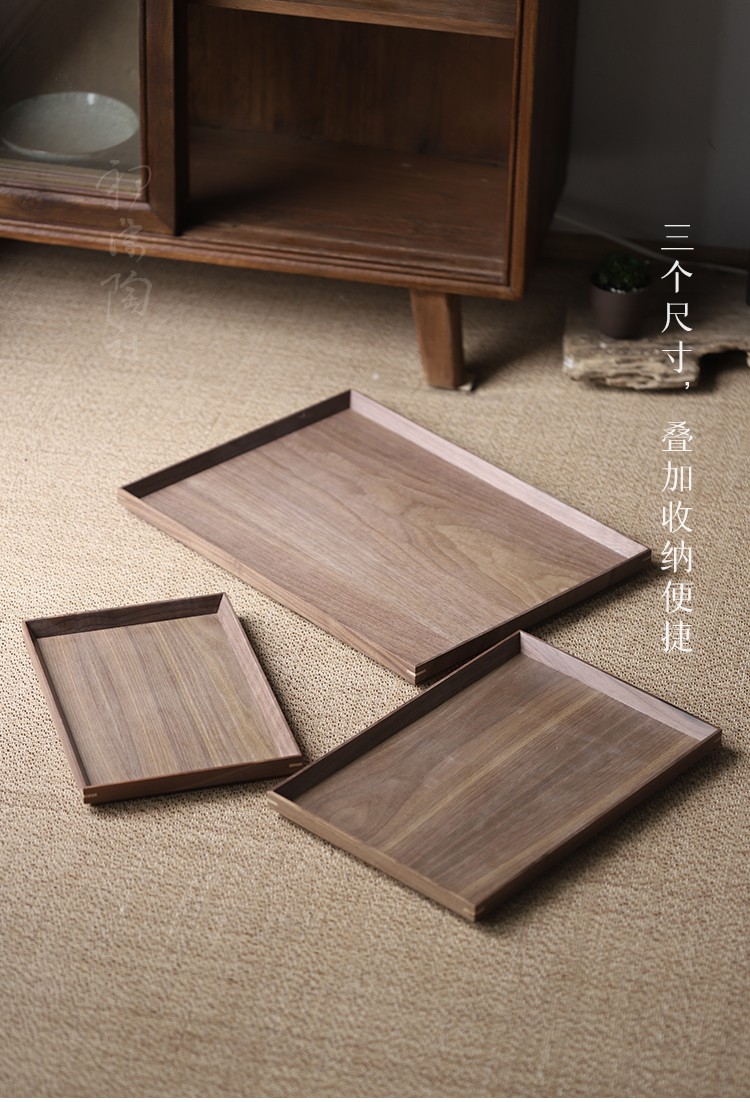 도매 검은 호두 차 트레이 작은 나무 트레이 일본 직사각형 저녁 식사 접시 케이크 빵 커피 차 단단한 나무 접시스토어 가기