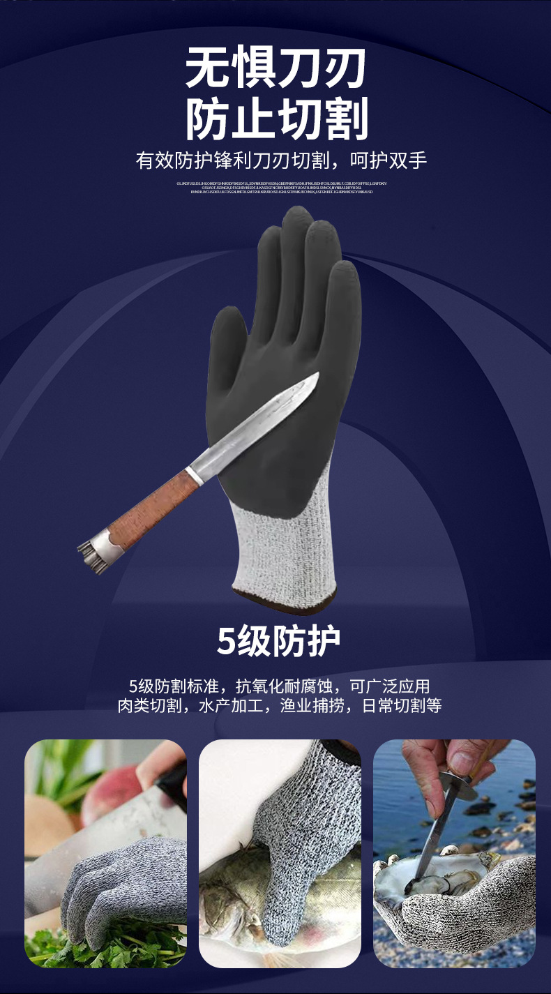 EN388 니트릴 스크럽 절단 방지 장갑 레벨 5 HEPPE 내마모성 주방 절단 방지 보호 노동 장갑 도매스토어 가기