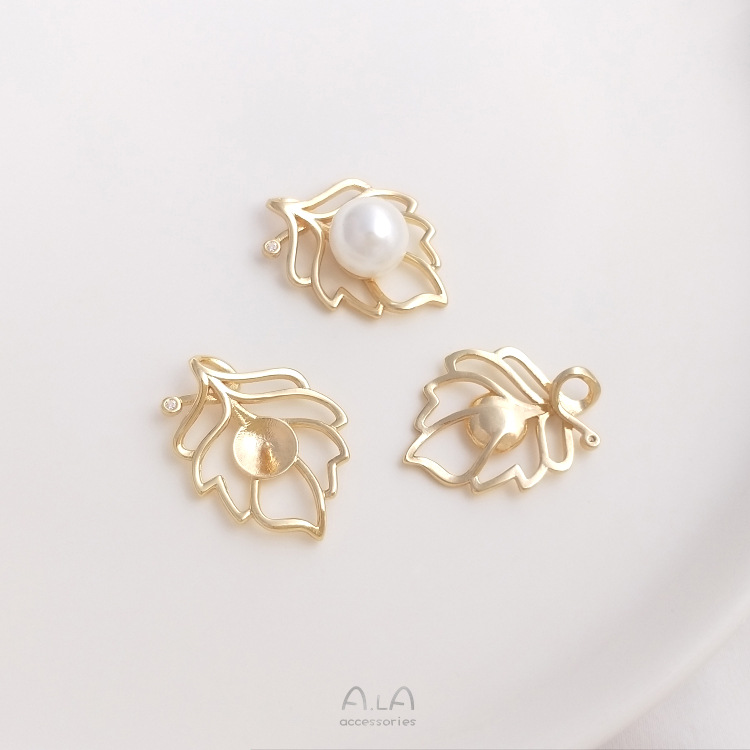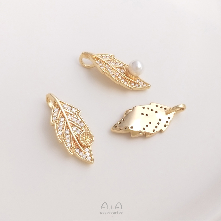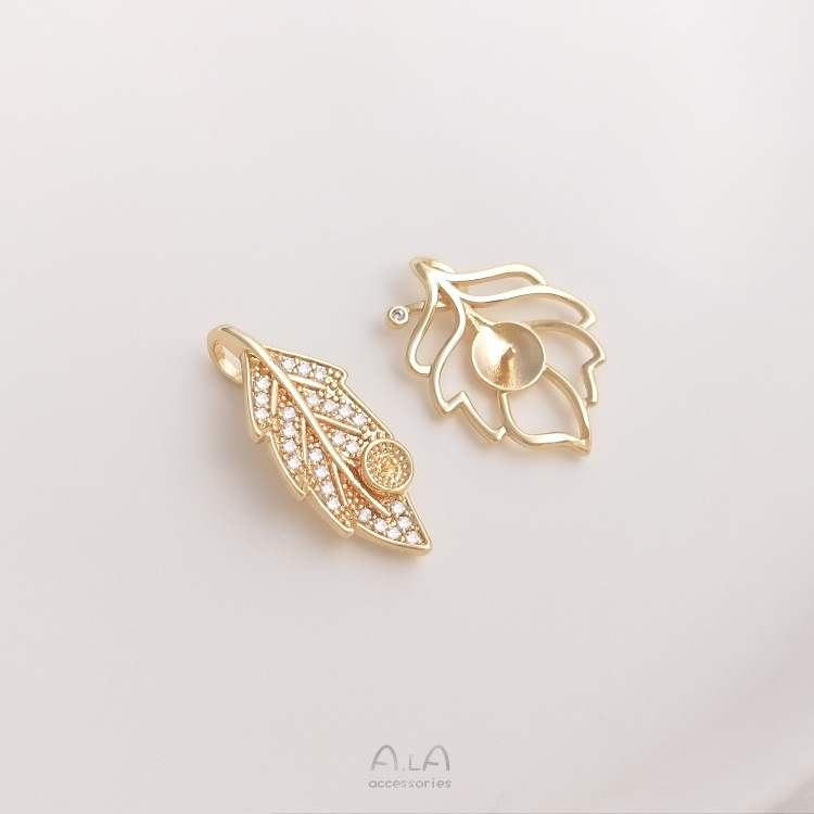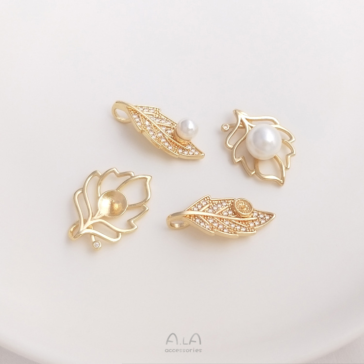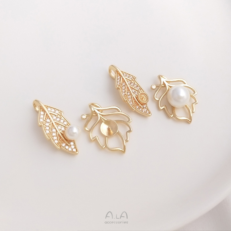 마이크로 상감 지르콘 14K 금도금 전기 도금 진주 홀더 나뭇잎 펜던트 수제 접착 진주 diy 목걸이 쥬얼리 펜던트스토어 가기