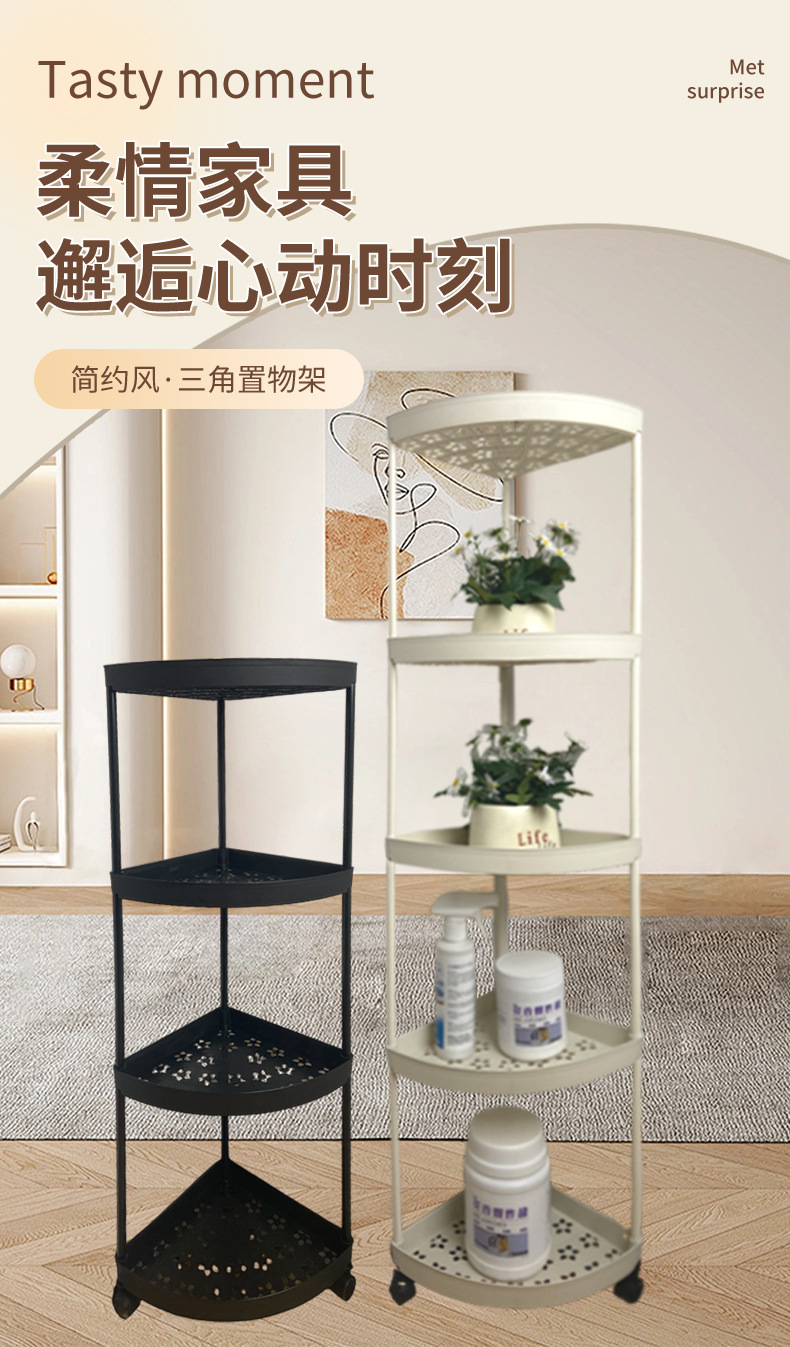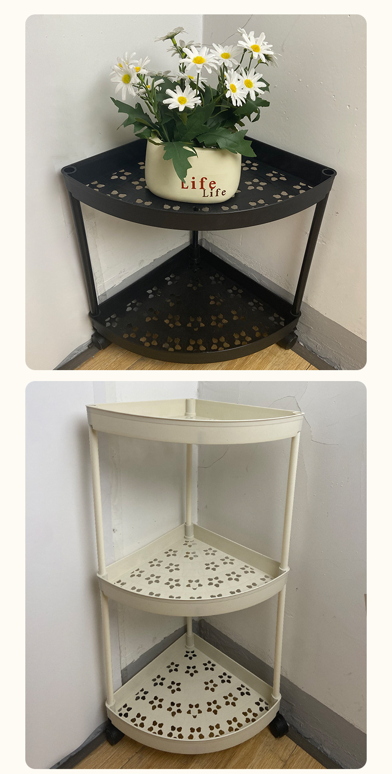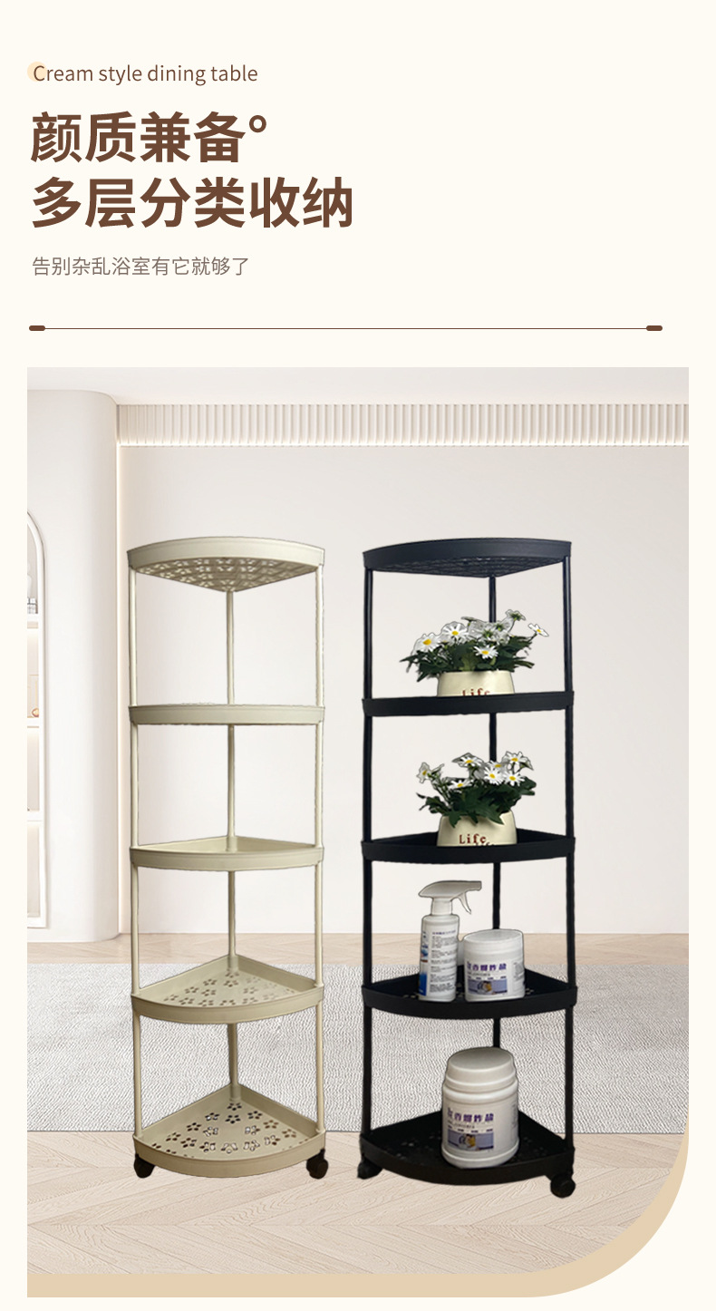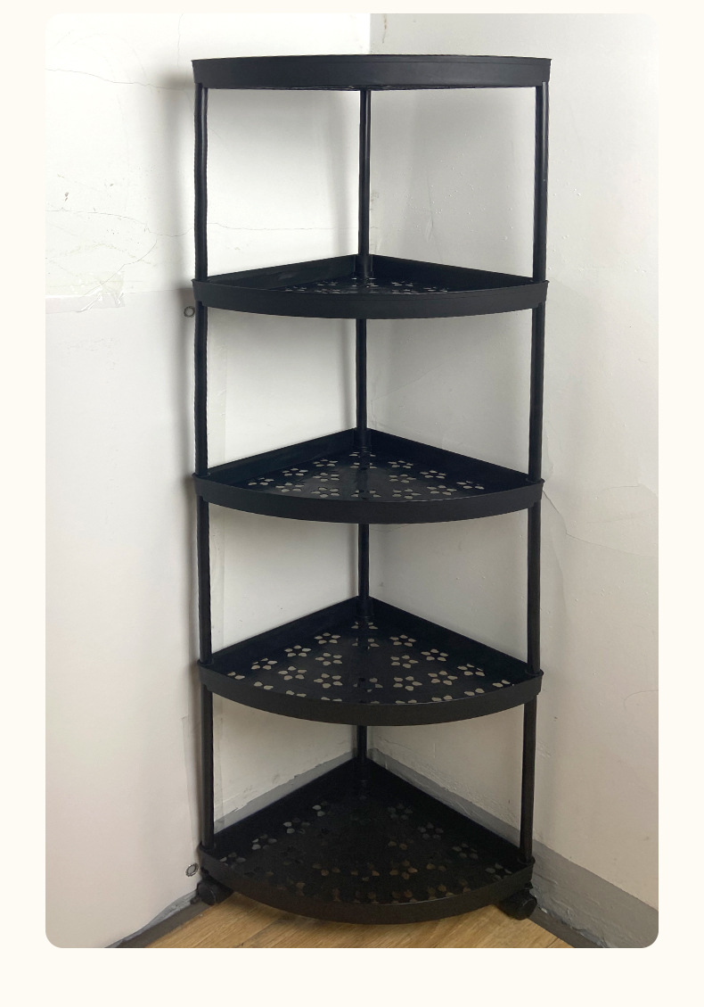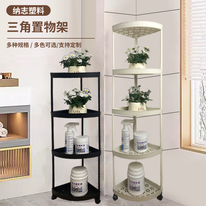 맞춤형 욕실 수납 선반, 배수 가능한 욕실 다층 수납 선반, 가정용 바닥 플라스틱 삼각형 수납 선반스토어 가기