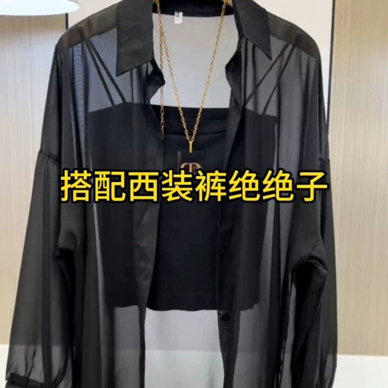 夏季新款雪纺防晒衬衫女长袖韩版宽松中长款防紫外线外搭薄款开衫