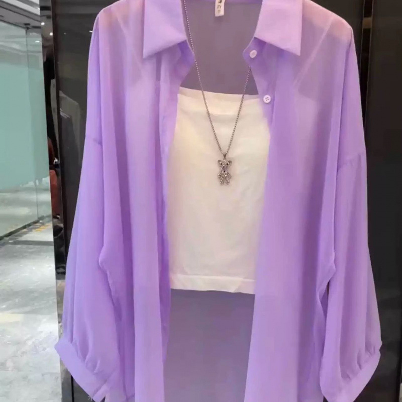 여름 신작 쉬폰 자외선 차단 셔츠 여성 긴팔 한국식 루즈한 중간 길이 자외선 차단 얇은 가디건스토어 가기