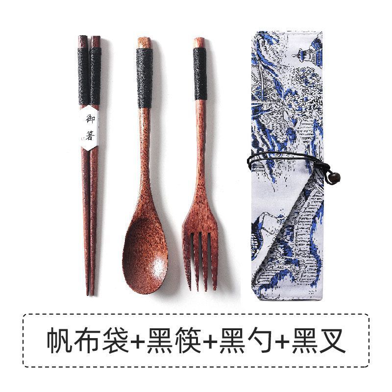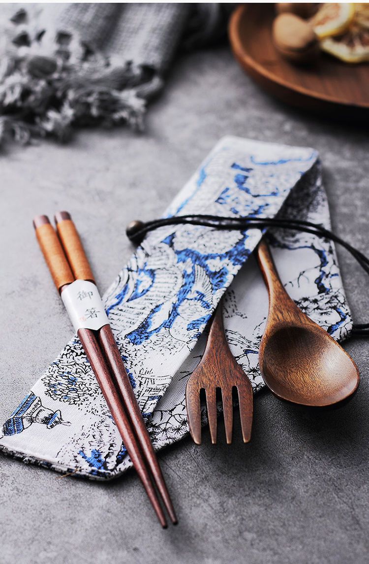 • 갈색 젓가락 + 숟가락 + 포크 + 캔버스 가방⚑