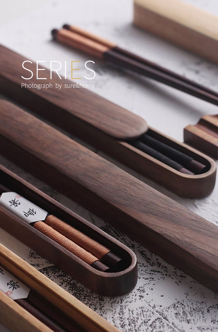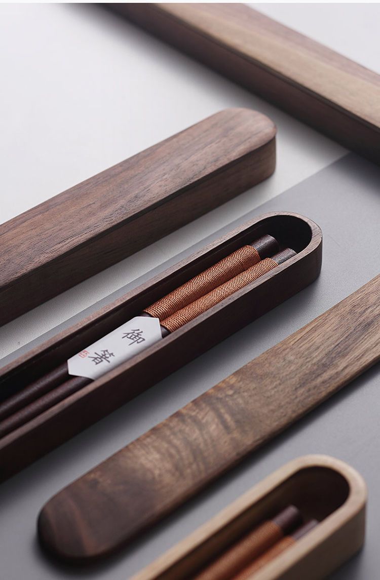 • 검은색 실 젓가락 + 검은 호두나무 젓가락 상자⚑