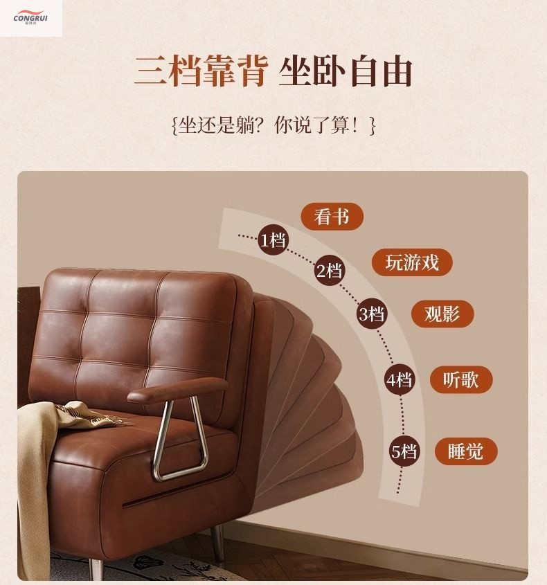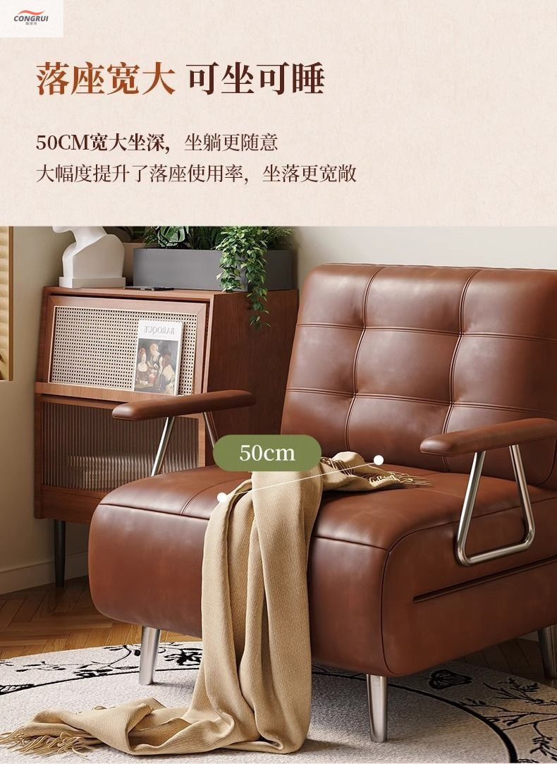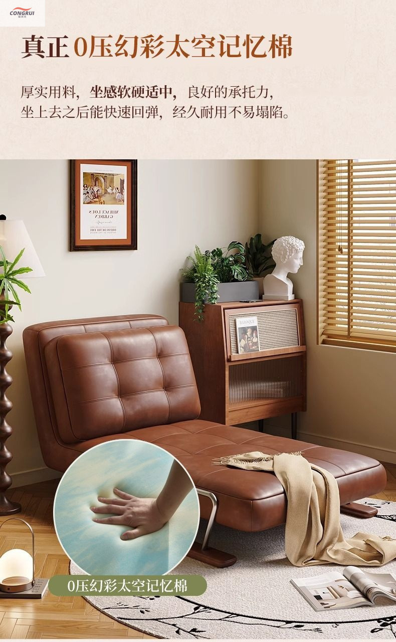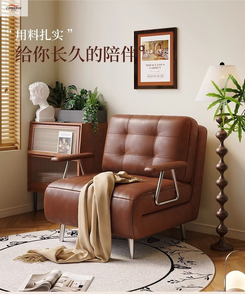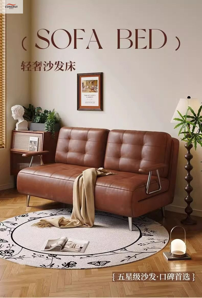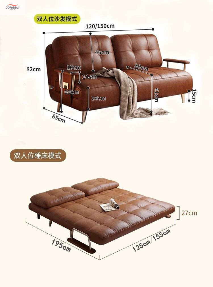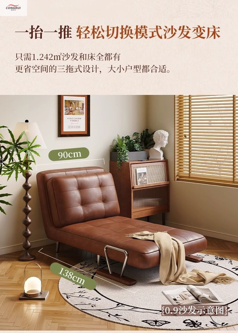 Congruishang 접이식 소파 베드 이중 목적 저장 2025 새로운 복고풍 소형 아파트 개폐식 점심 시간 가죽 아트 소파