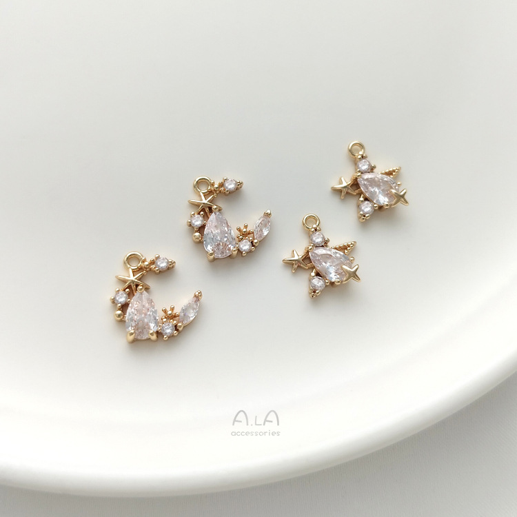 전기 도금 14K 금도금 상감 워터 드롭 지르콘 별과 달 펜던트 수제 보석 펜던트 팔찌 목걸이 펜던트