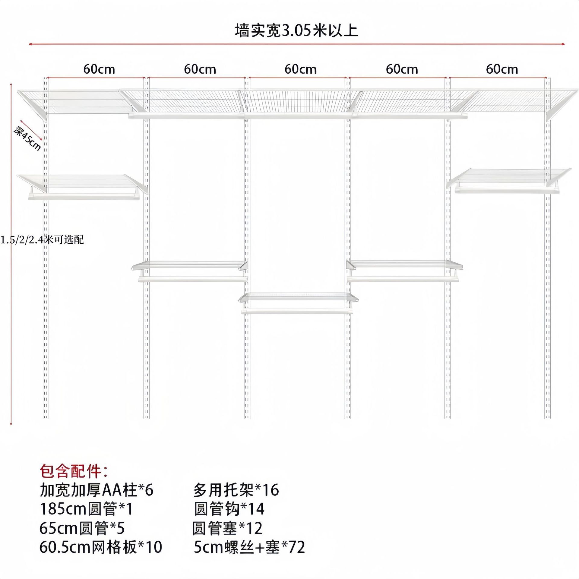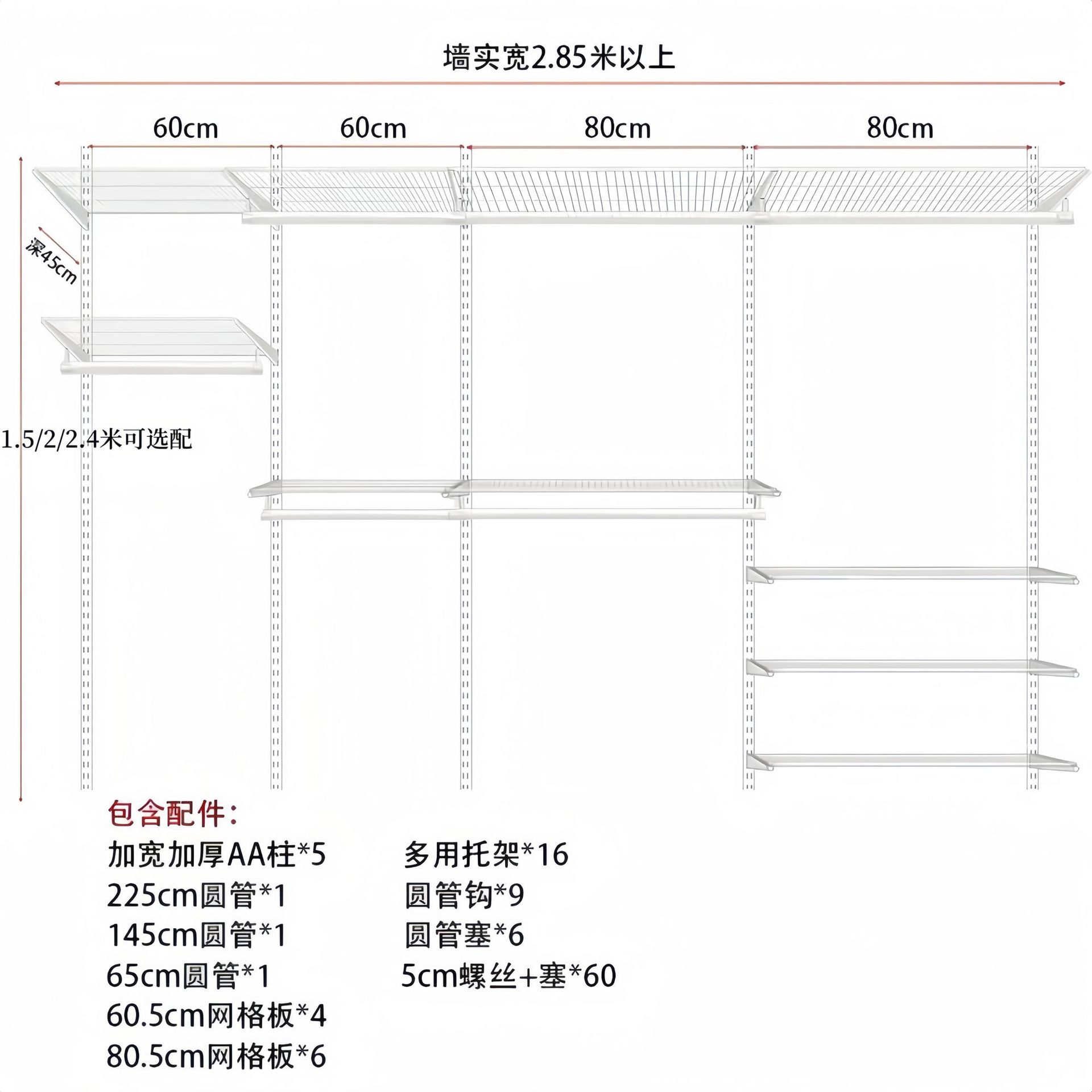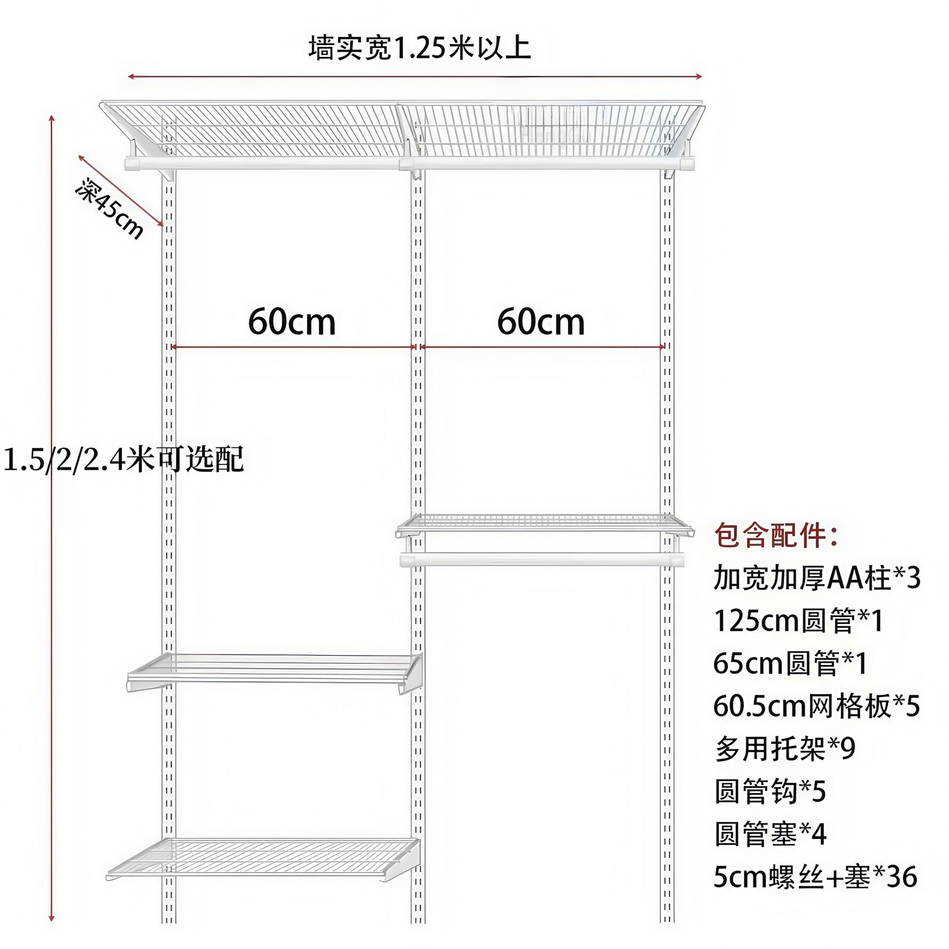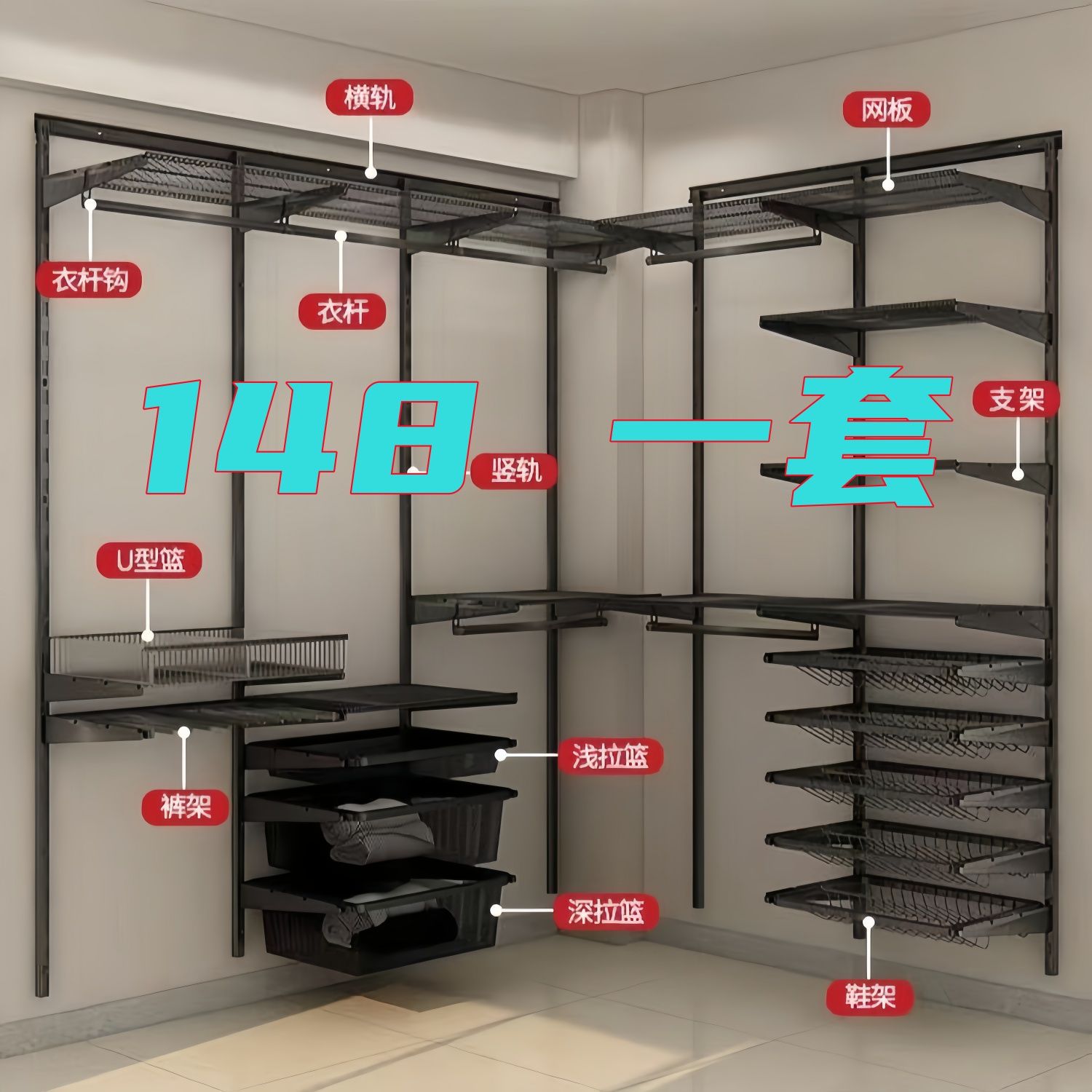두꺼운 개방형 금속 옷장, 옷장, 도매 조합 침실 옷장, 벽 그리드 조립 저장