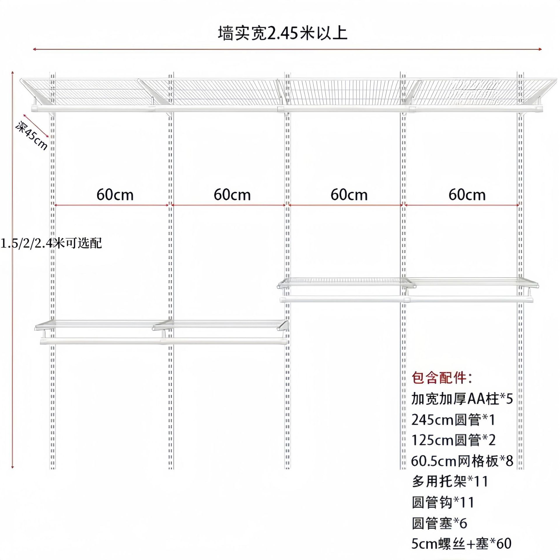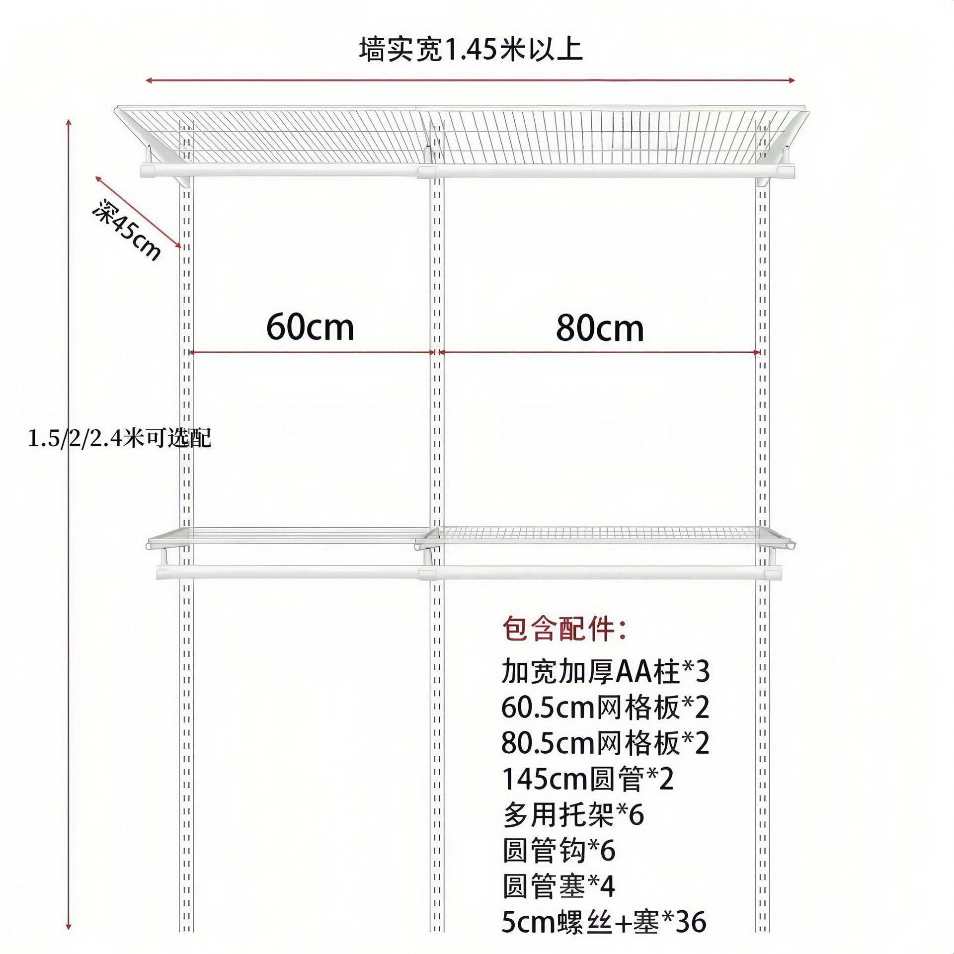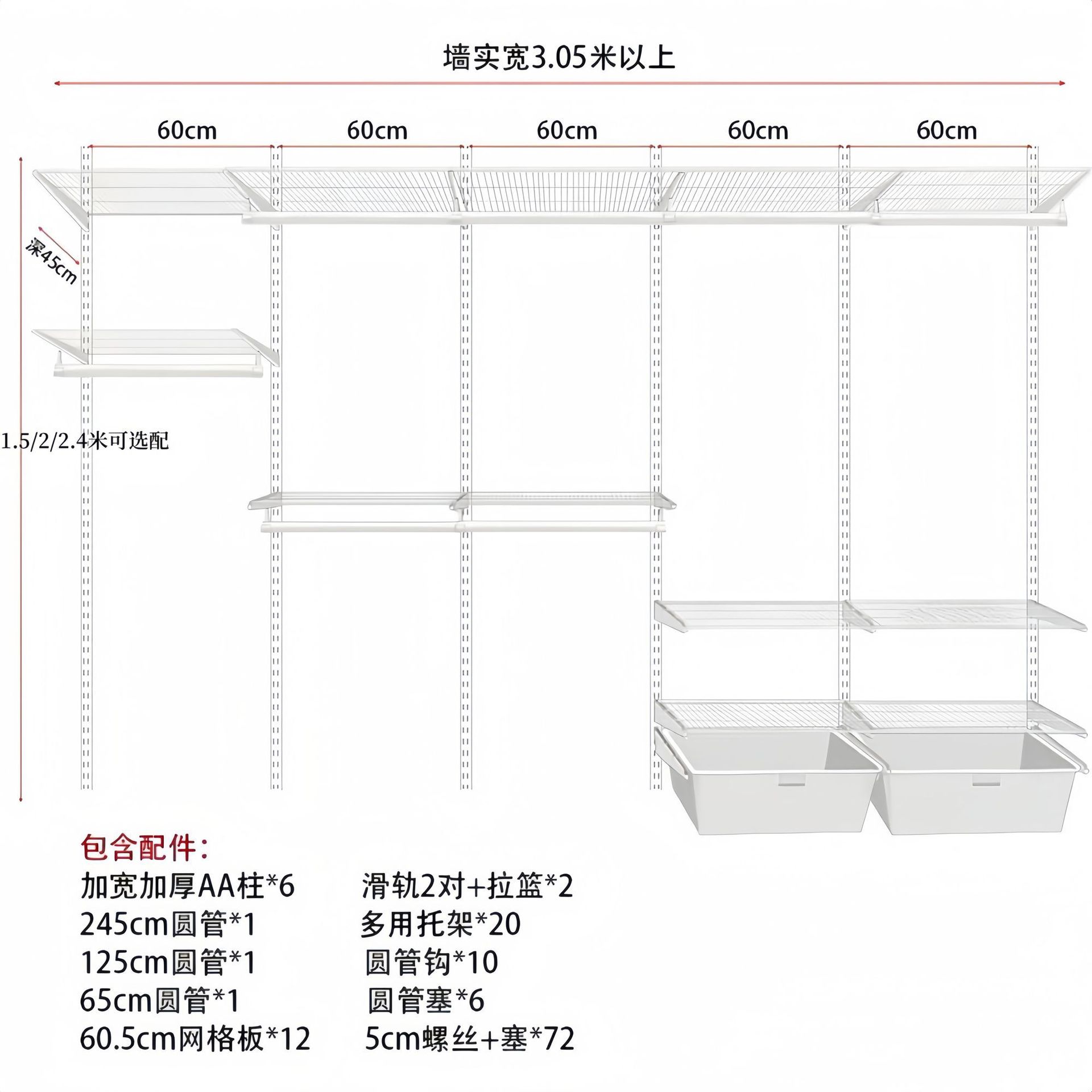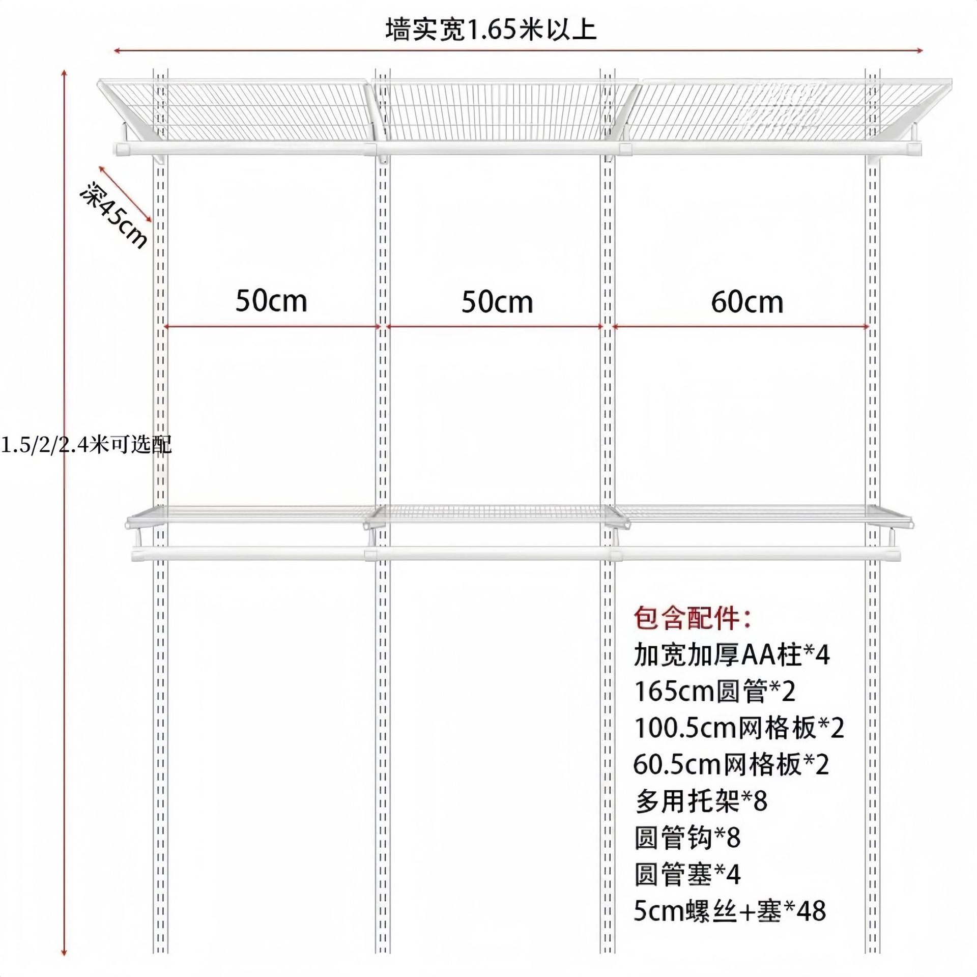 두꺼운 개방형 금속 옷장, 옷장, 도매 조합 침실 옷장, 벽 그리드 조립 저장