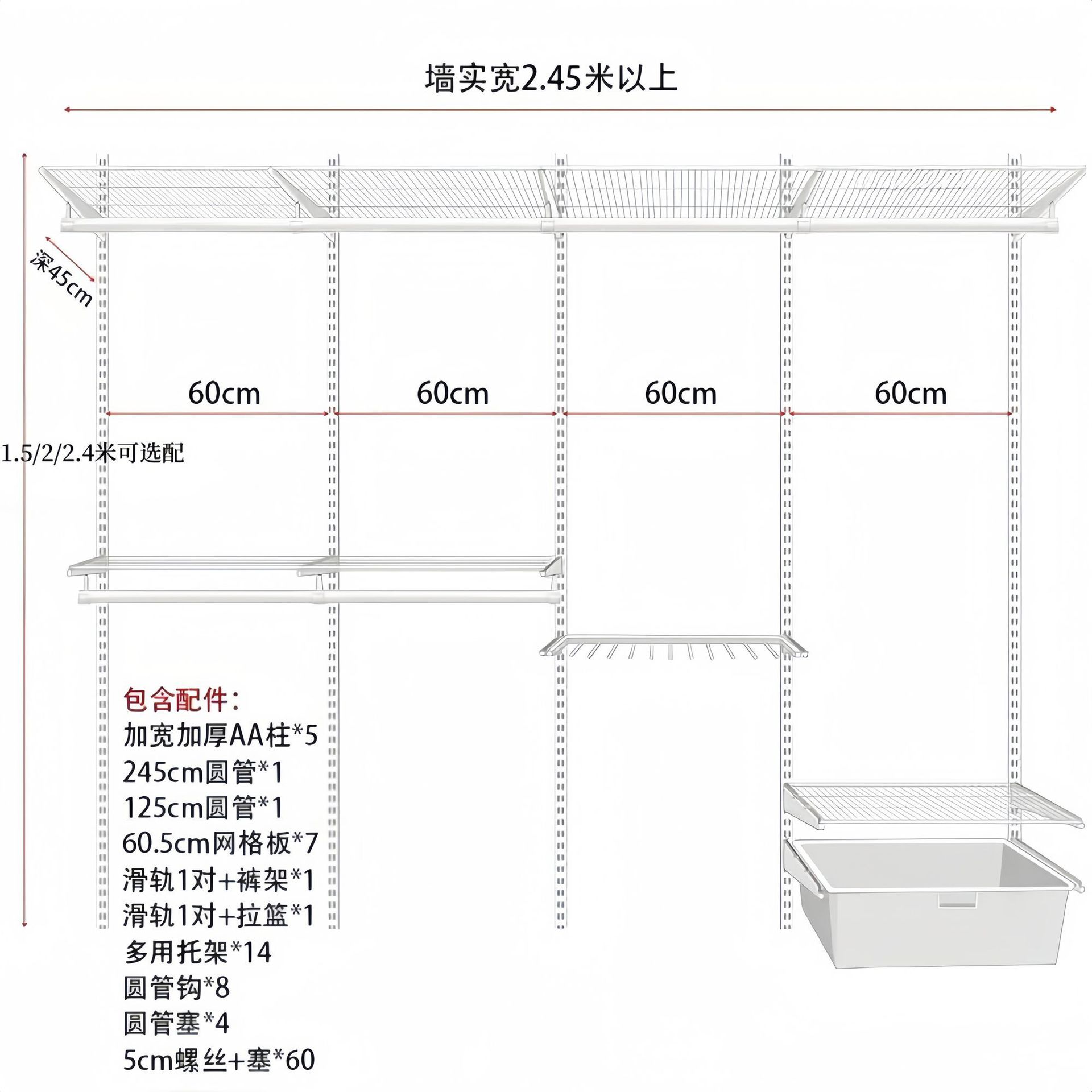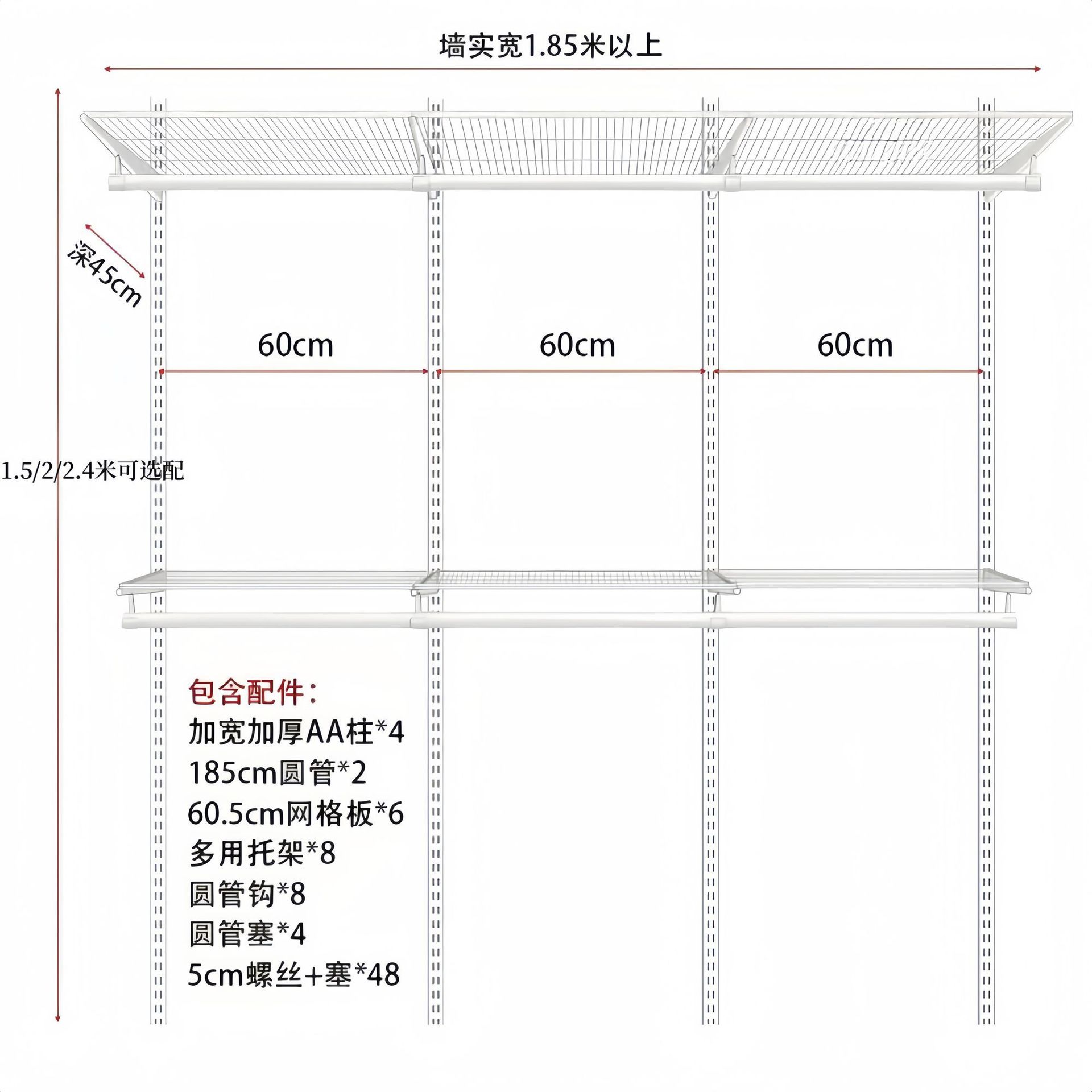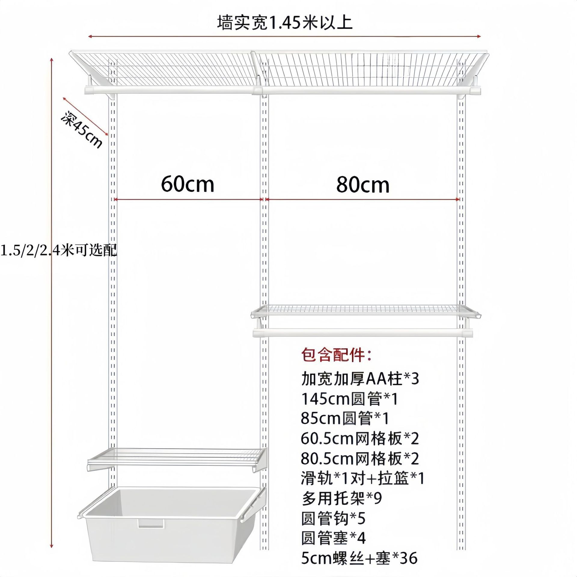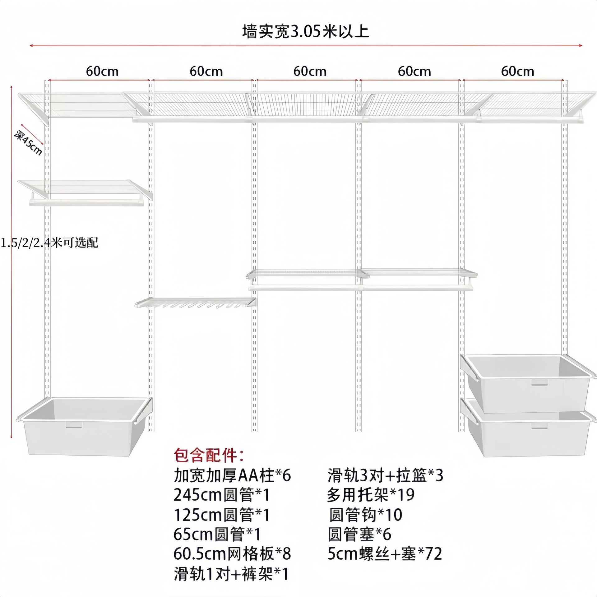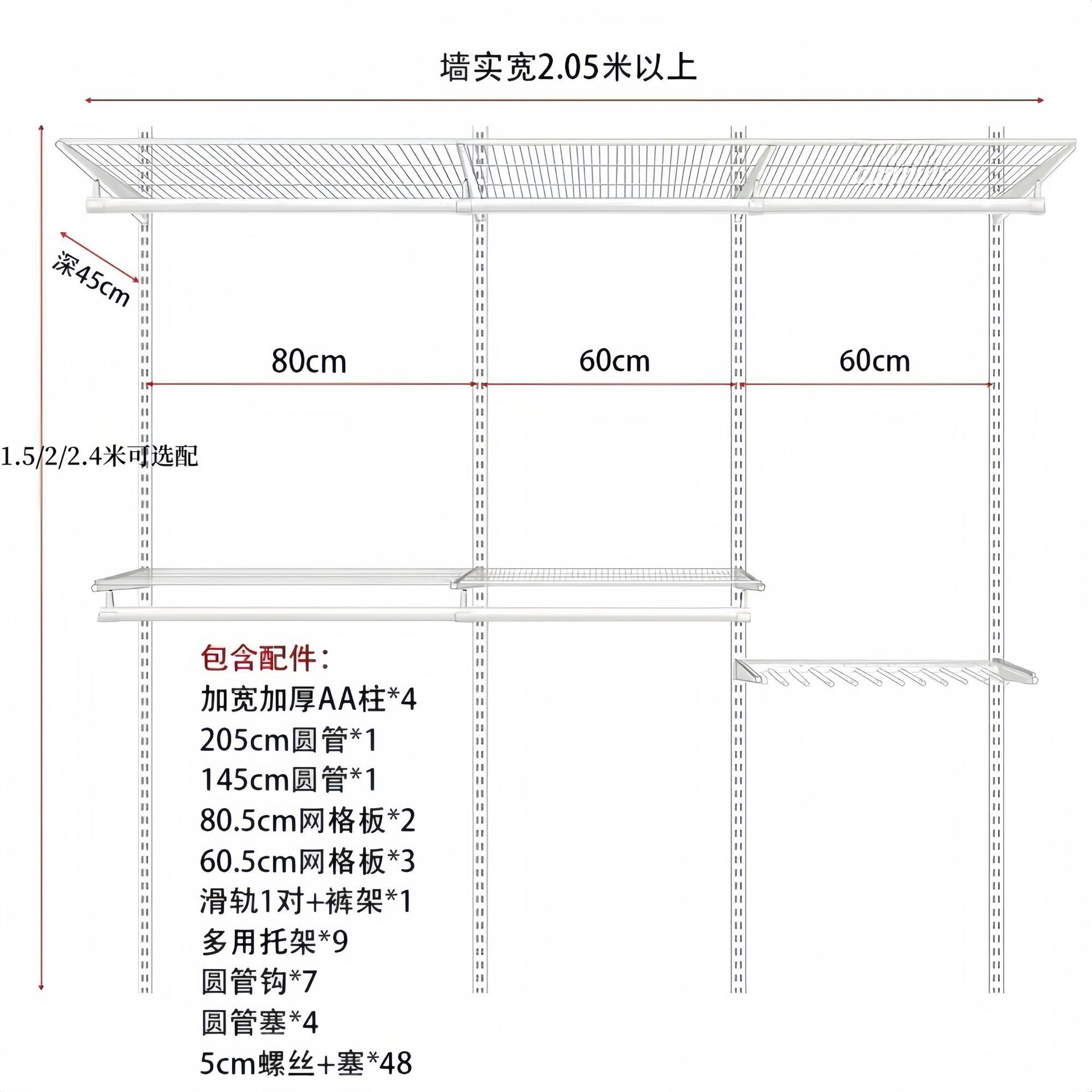 두꺼운 개방형 금속 옷장, 옷장, 도매 조합 침실 옷장, 벽 그리드 조립 저장
