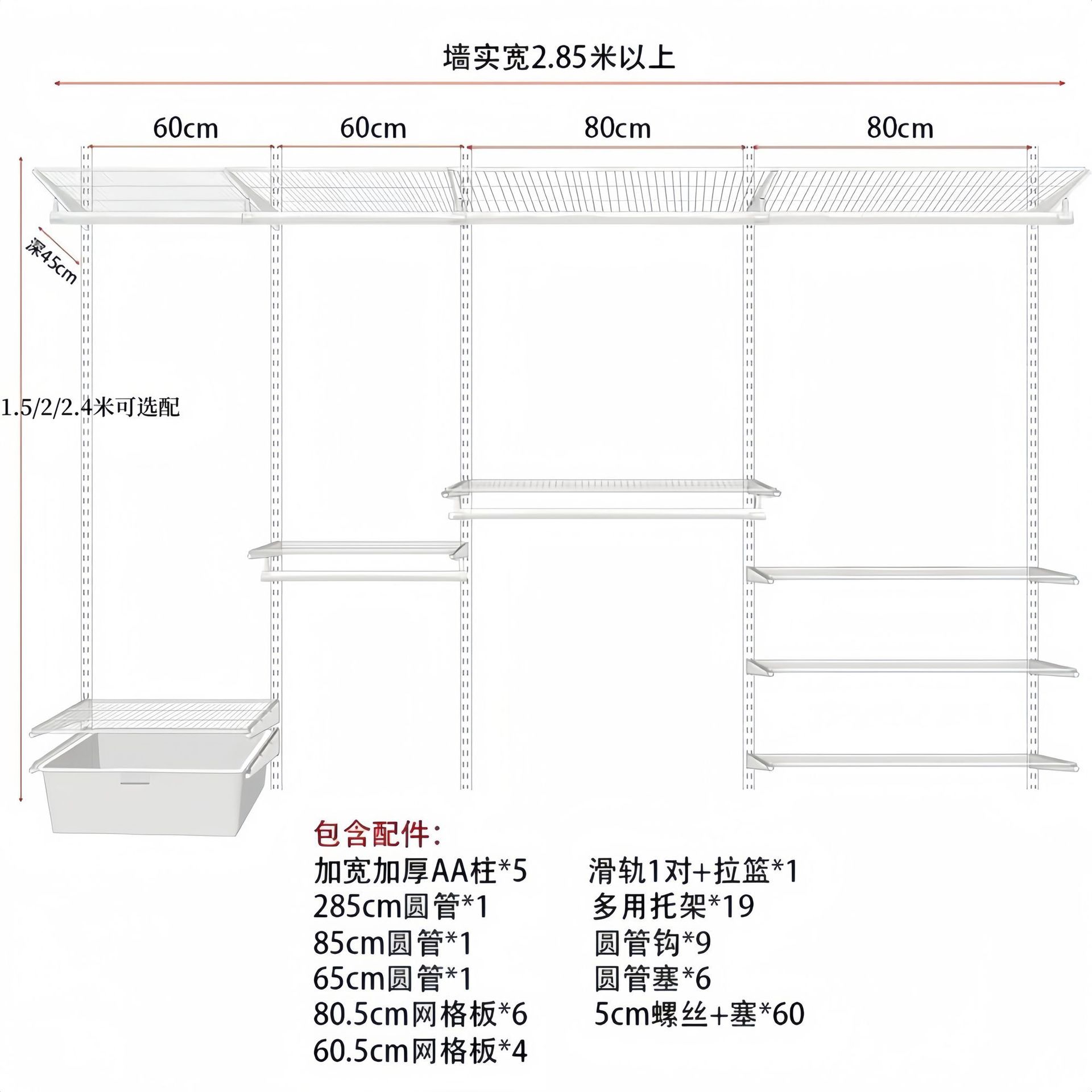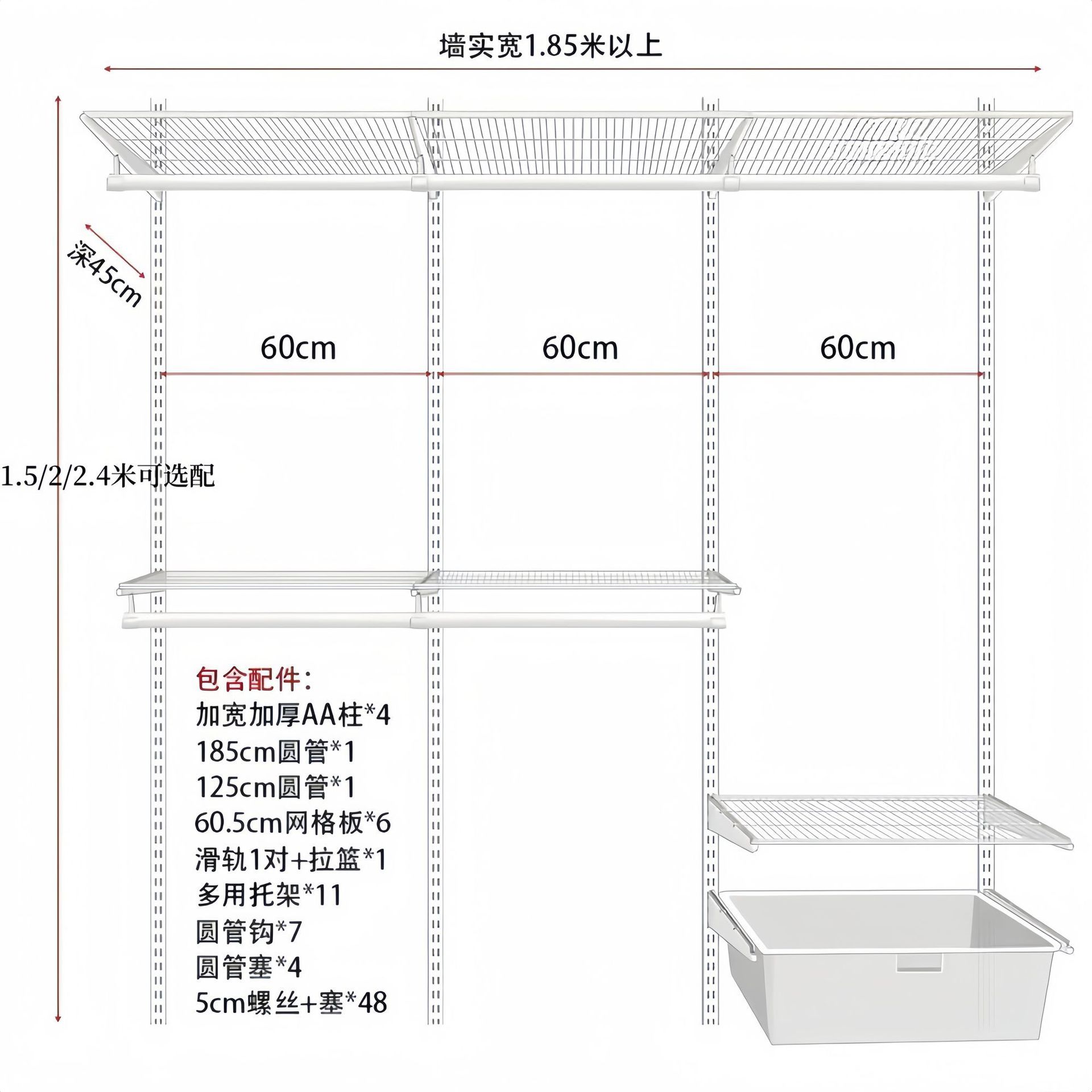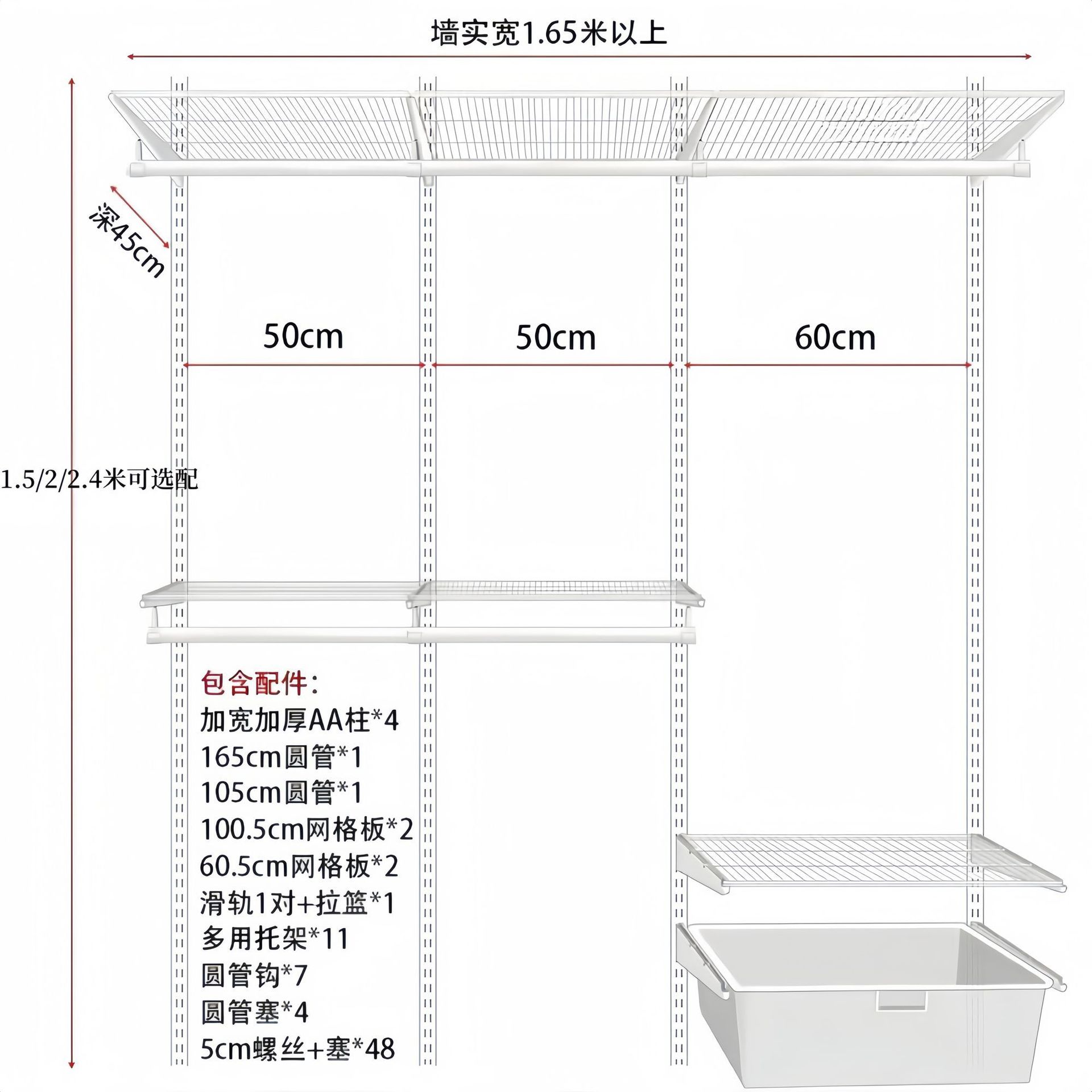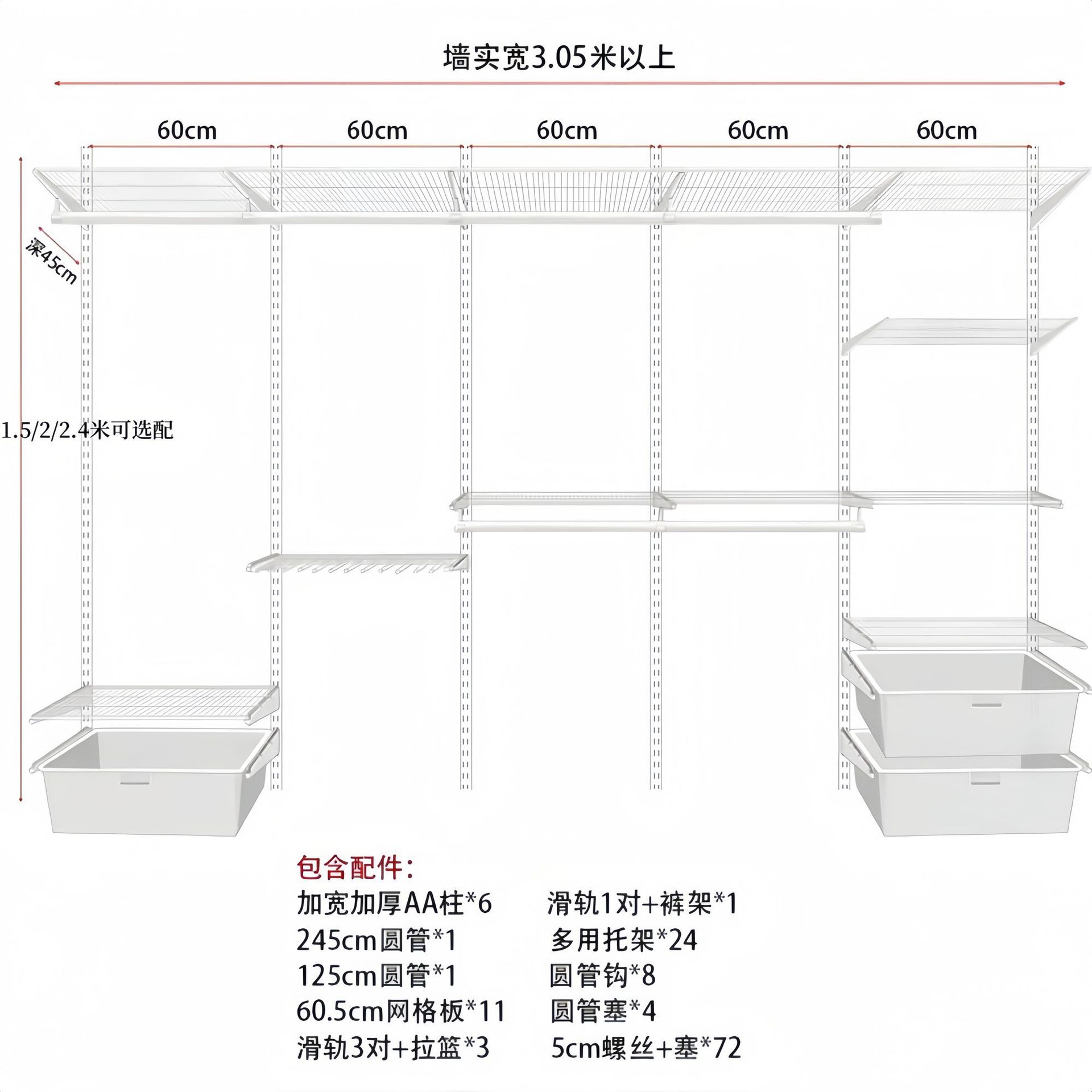두꺼운 개방형 금속 옷장, 옷장, 도매 조합 침실 옷장, 벽 그리드 조립 저장