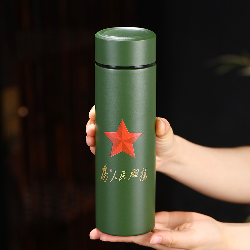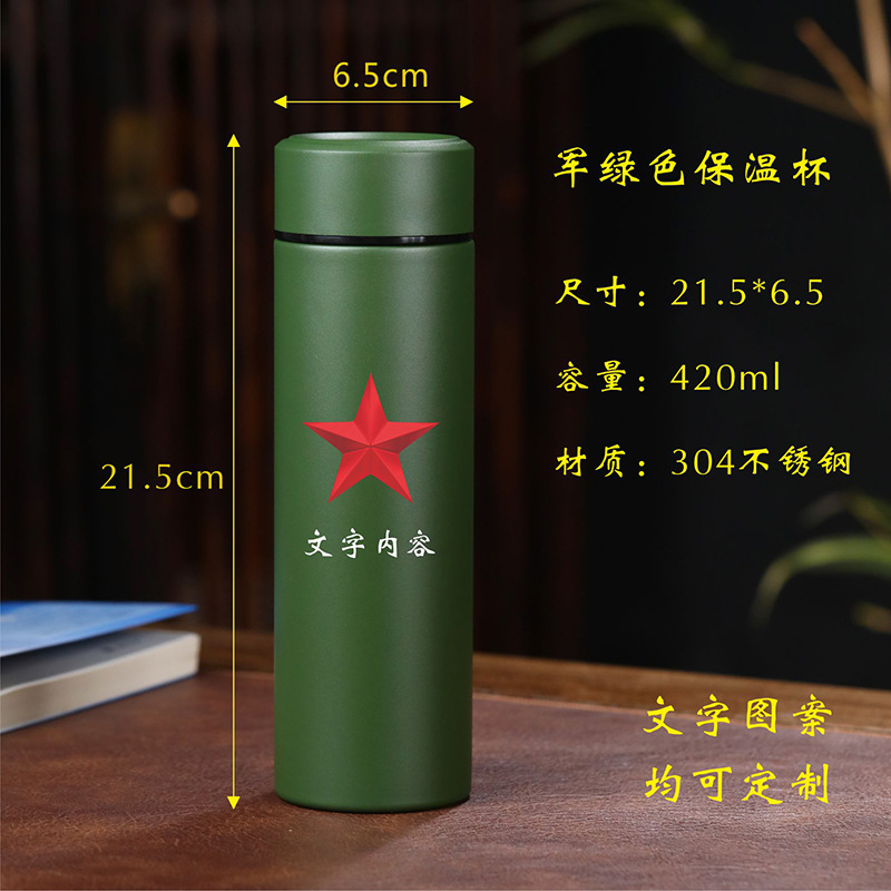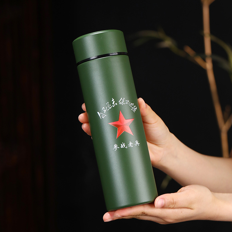 군용 녹색 보온병 컵, 8월 1일 파티 동료, 군대 창립 기념일 기념 선물 물컵, 각인