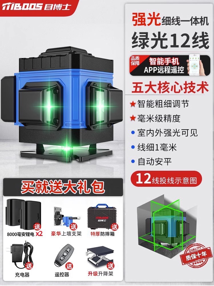 12라인 적외선 레벨링 장비, 고정밀, 강한 빛, 얇은 라인 레이저, 벽걸이형 및 바닥형, 실외 녹색광 자동 레벨링 장비스토어 가기