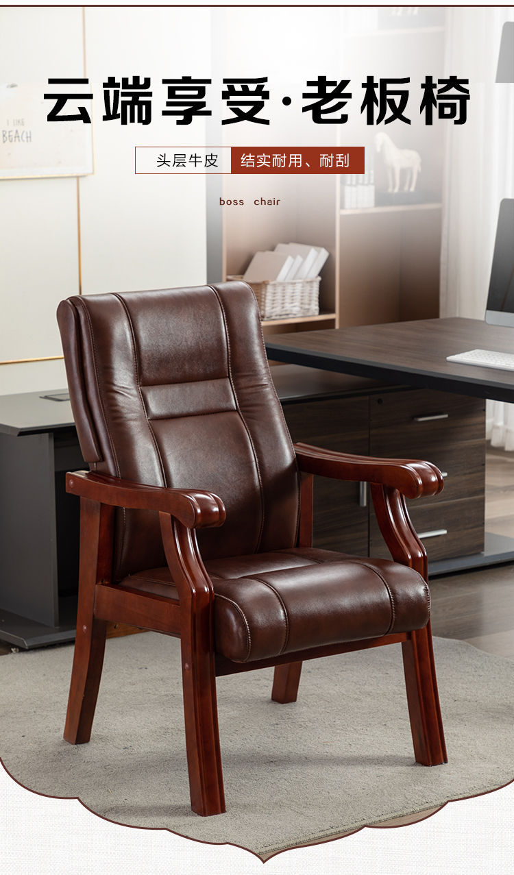 컴퓨터 사무실 의자, 가정용 편안한 회의 체스 및 카드 룸 의자, 원목 보스 마작 가죽 시트, 4발 의자