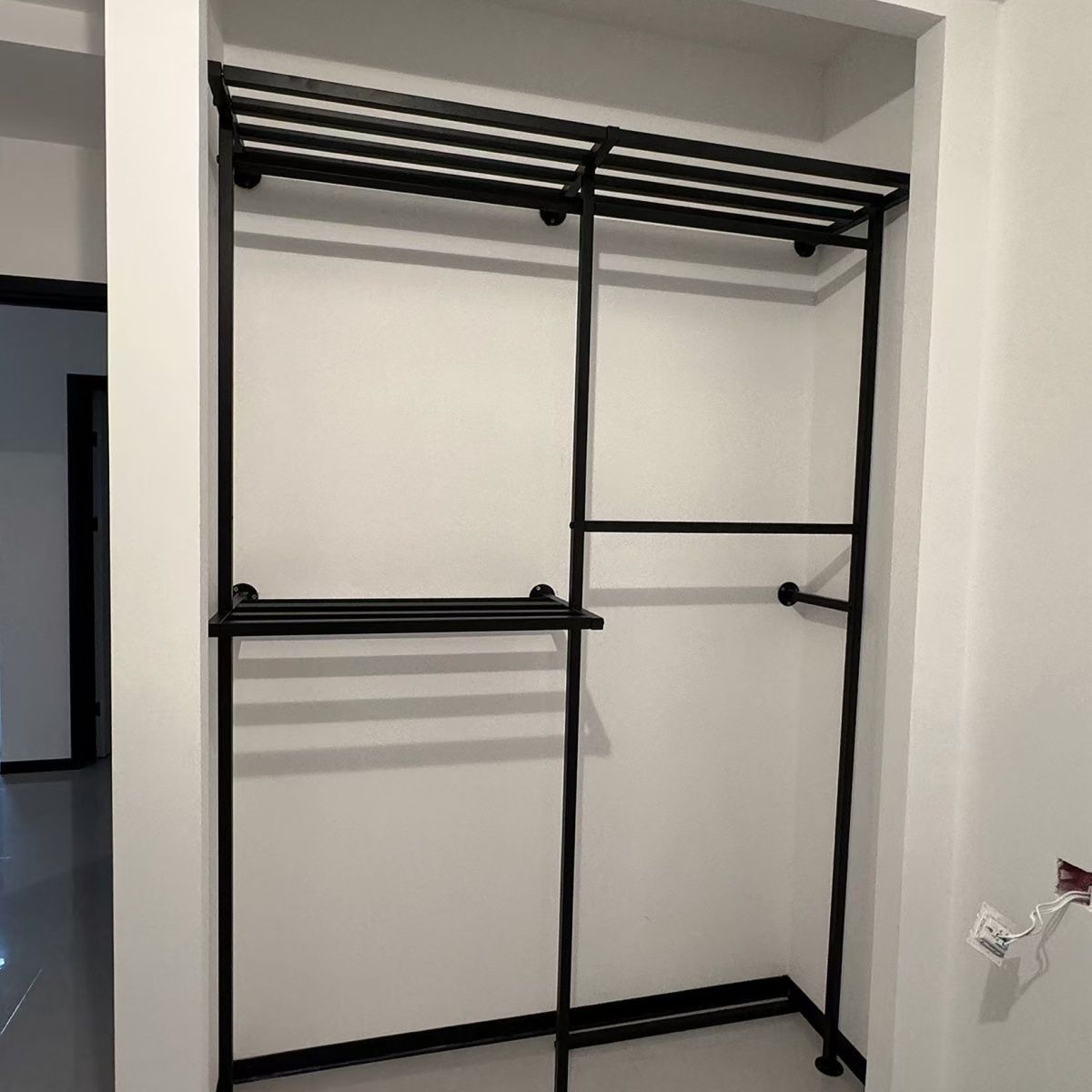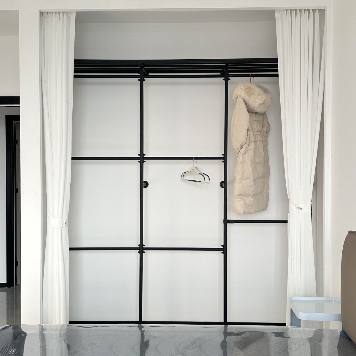 옷장 벽 옷장 벽 금속 옷걸이 가정용 간단한 철제 침실 더블 레이어 수납 옷걸이 수납 선반