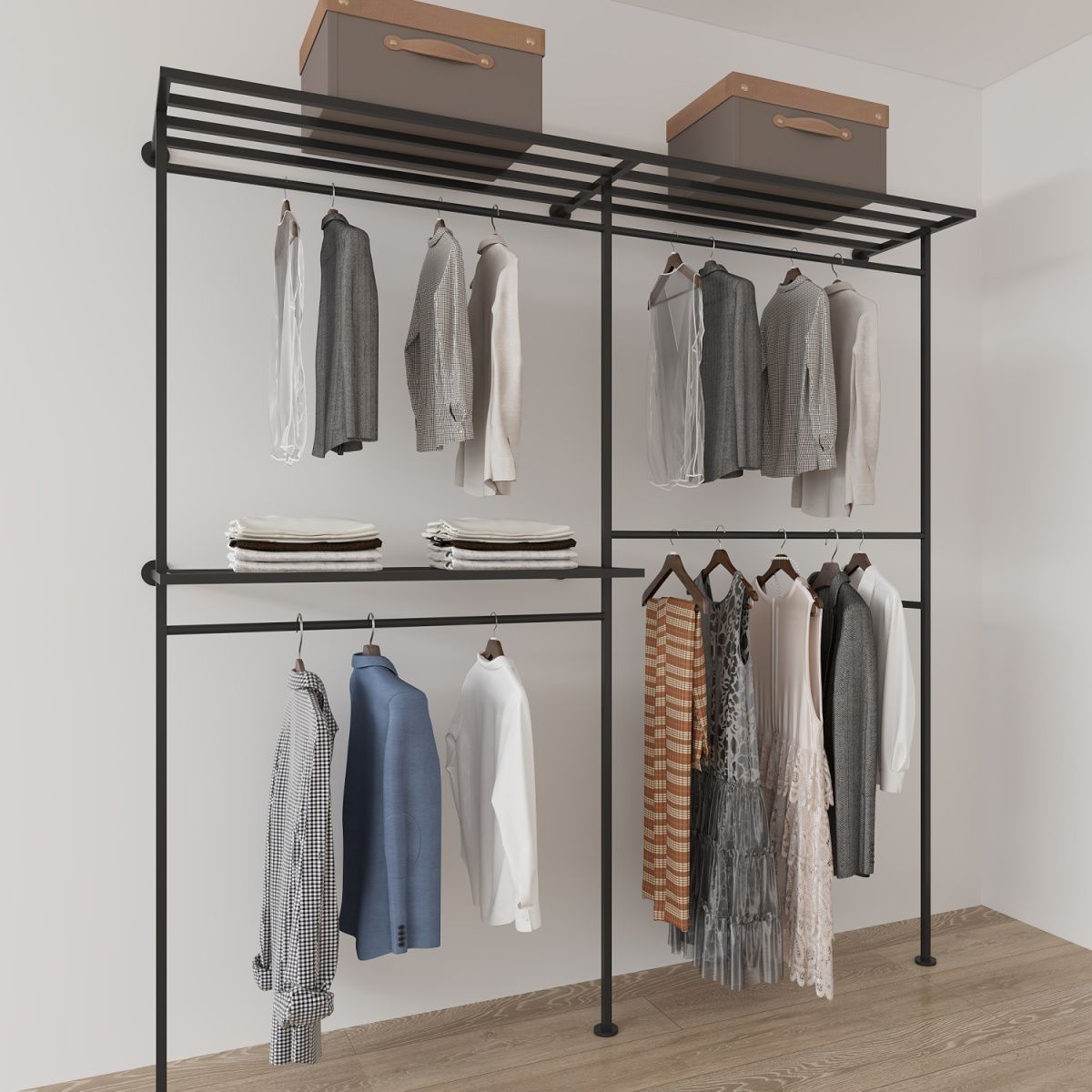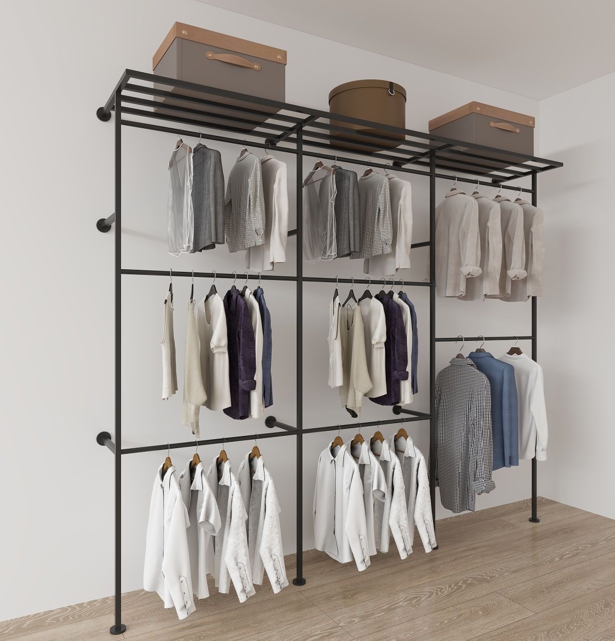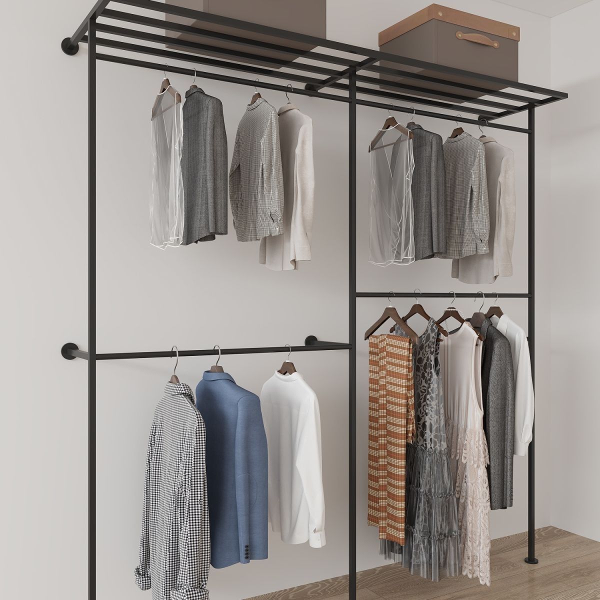 옷장 벽 옷장 벽 금속 옷걸이 가정용 간단한 철제 침실 더블 레이어 수납 옷걸이 수납 선반스토어 가기