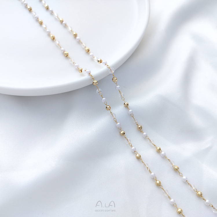 전기 도금 14K 진짜 금 모조 진주 절단 골드 비즈 크리스탈 체인 해바라기 루즈 체인 diy 수제 보석 체인스토어 가기