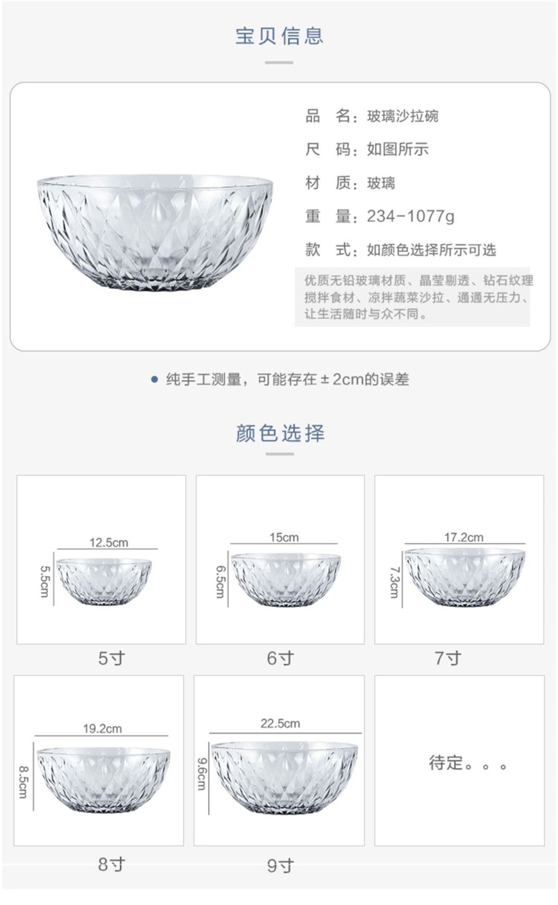 투명 유리 그릇과 접시 가정용 과일 샐러드 그릇 단일 기능 인터넷 연예인 학생 인스턴트 국수 크리 에이 티브 내열 그릇 식기스토어 가기