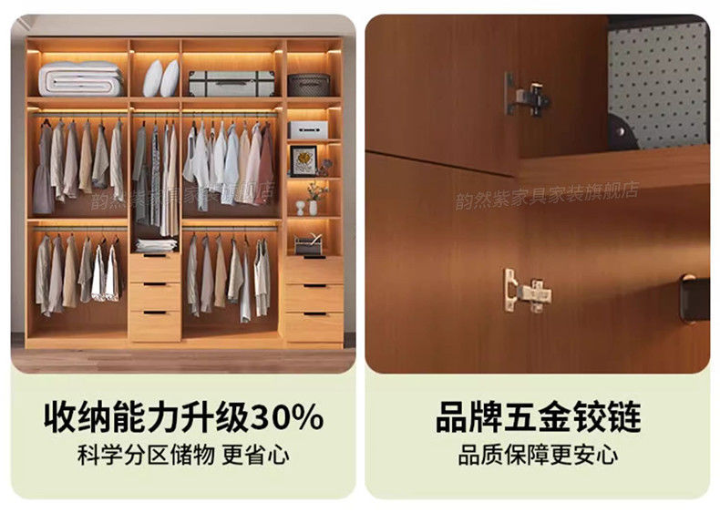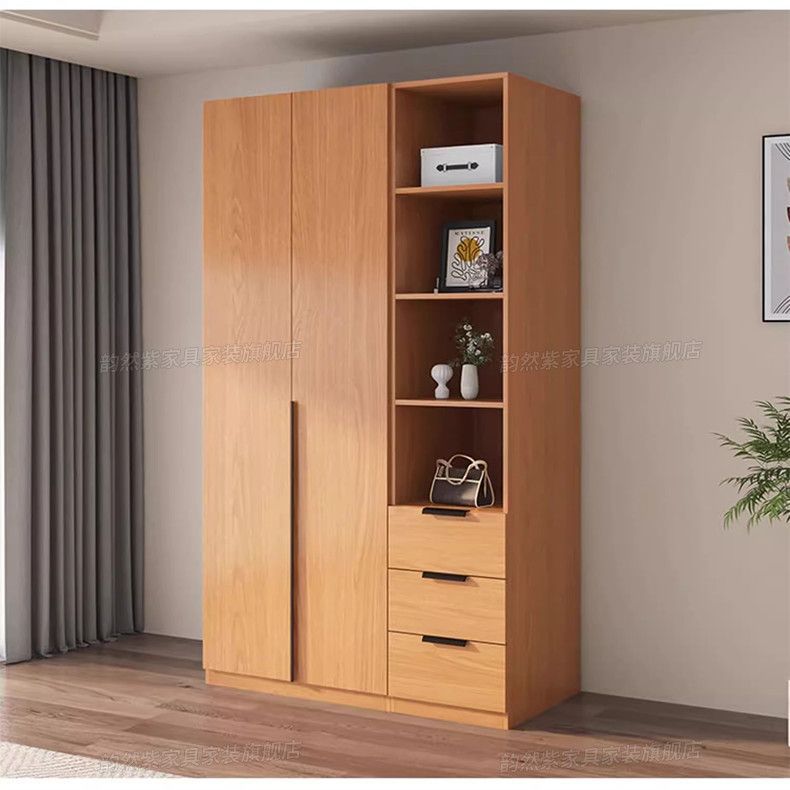 Yunran 보라색 오크 옷장 홈 침실 양문형 단순 현대 단단한 나무 옷장 작은 아파트 임대 옷장스토어 가기