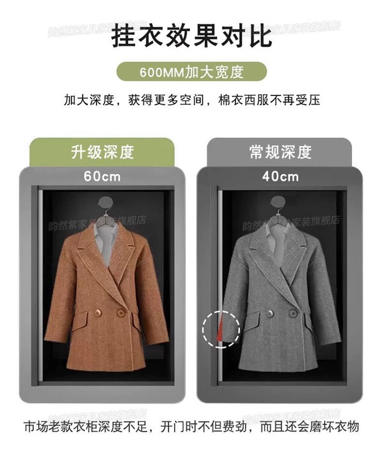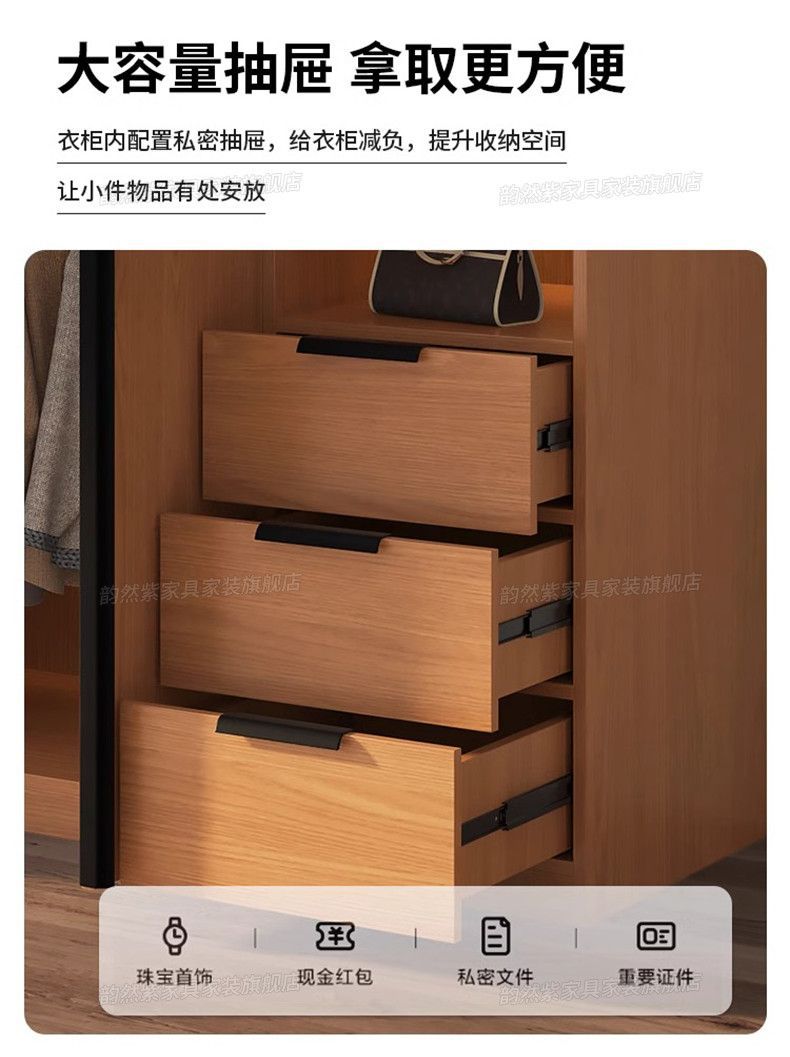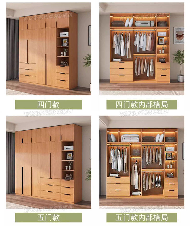 Yunran 보라색 오크 옷장 홈 침실 양문형 단순 현대 단단한 나무 옷장 작은 아파트 임대 옷장