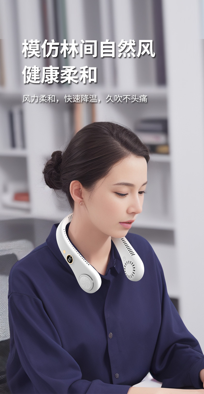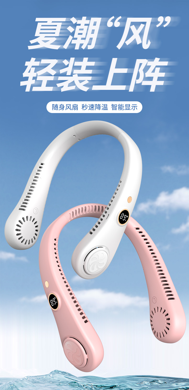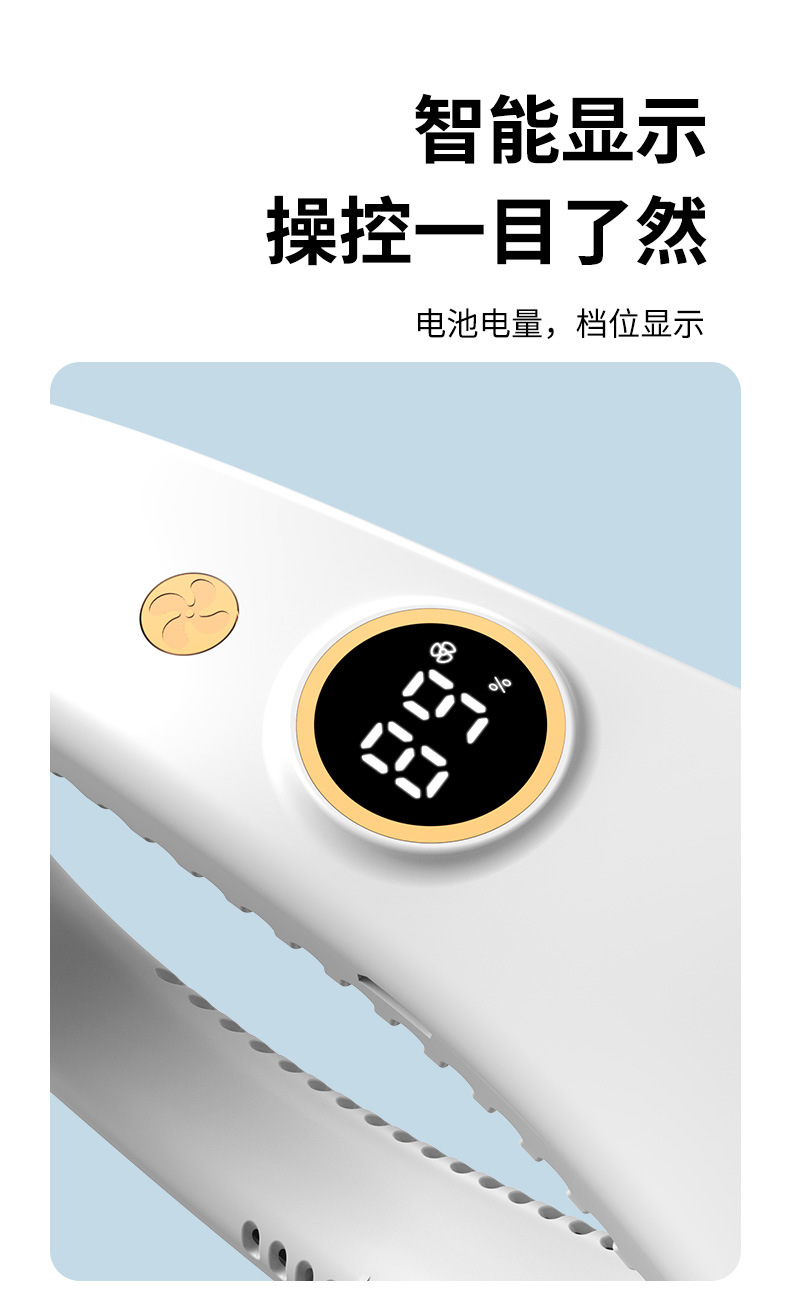 추천 USB 충전식 휴대용 Bladeless 교수형 목 팬 사무실 디지털 디스플레이 조절 가능한 소형 팬
