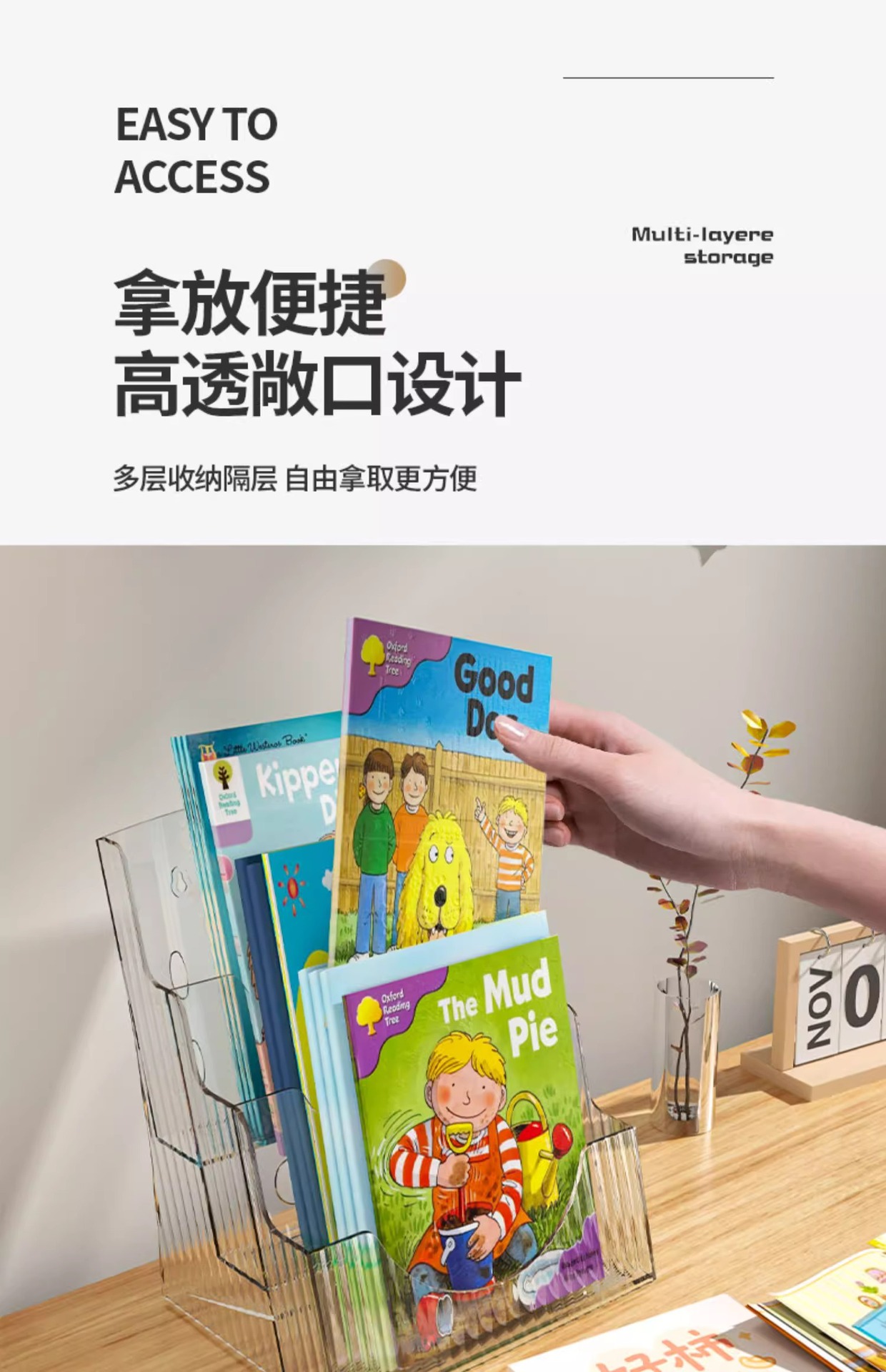 데스크탑 책장 어린이 그림책 독서 보관 작은 잡지 랙 아크릴 투명 옥스포드 트리 정리 상자