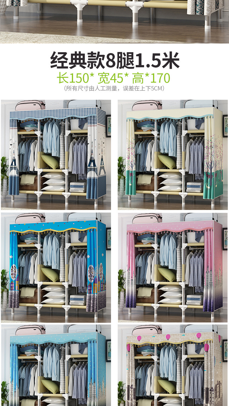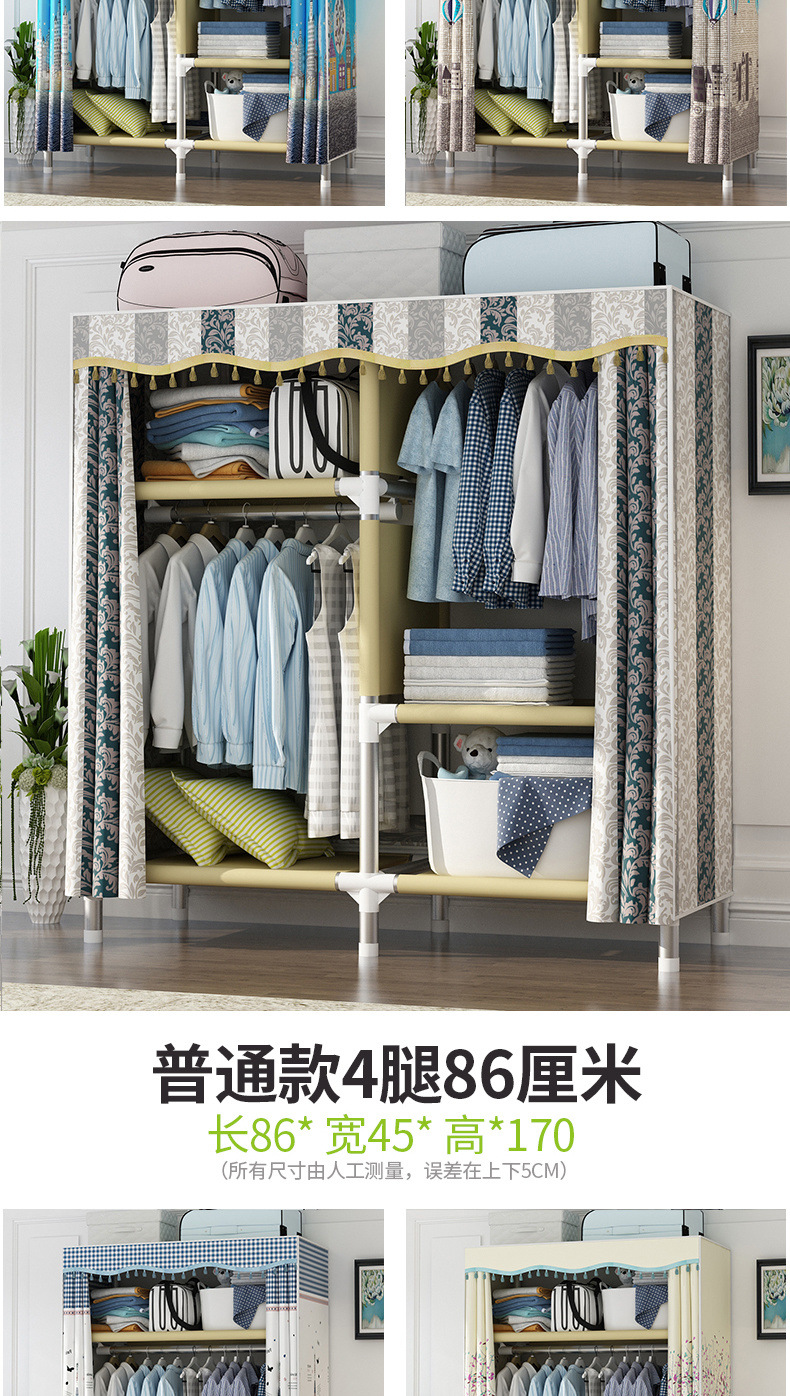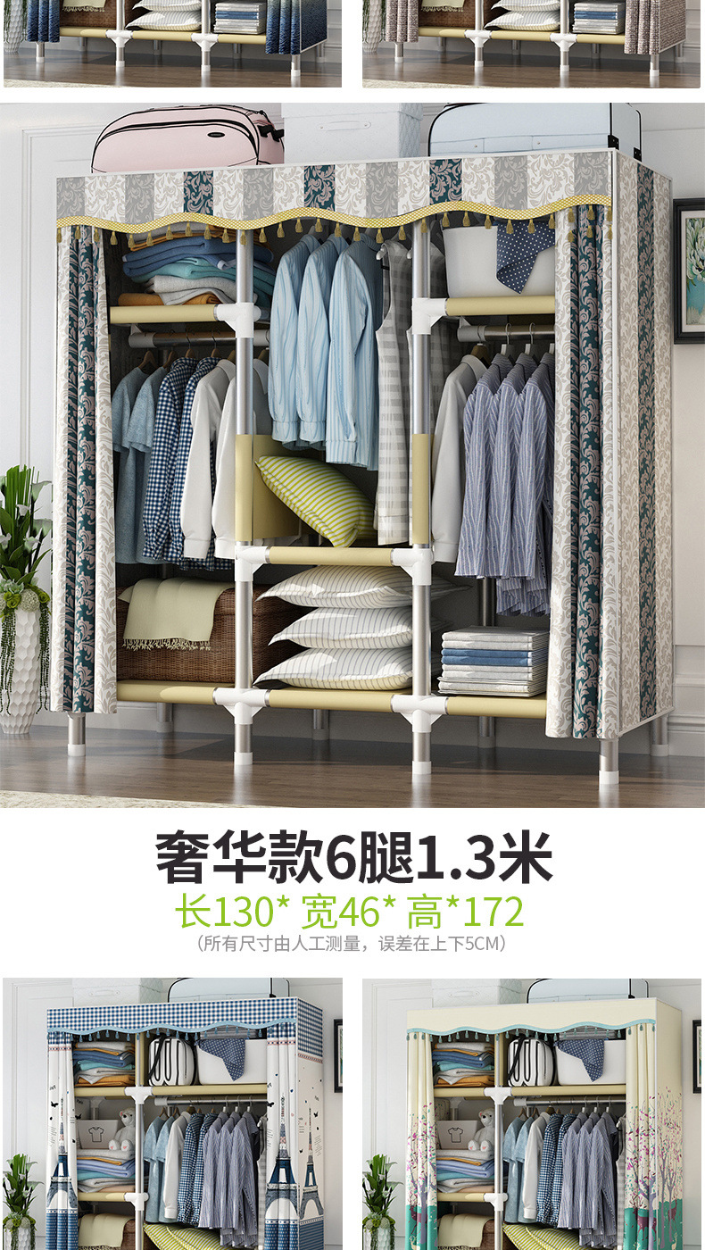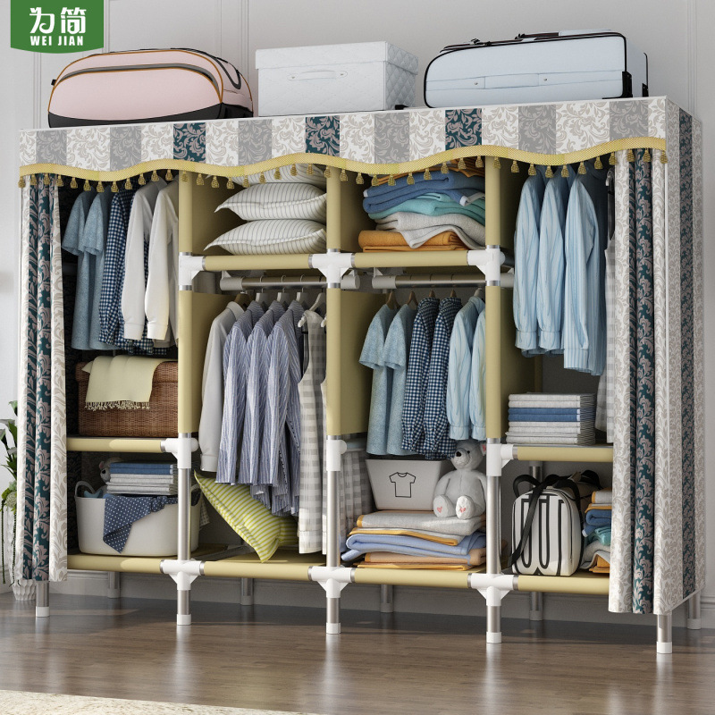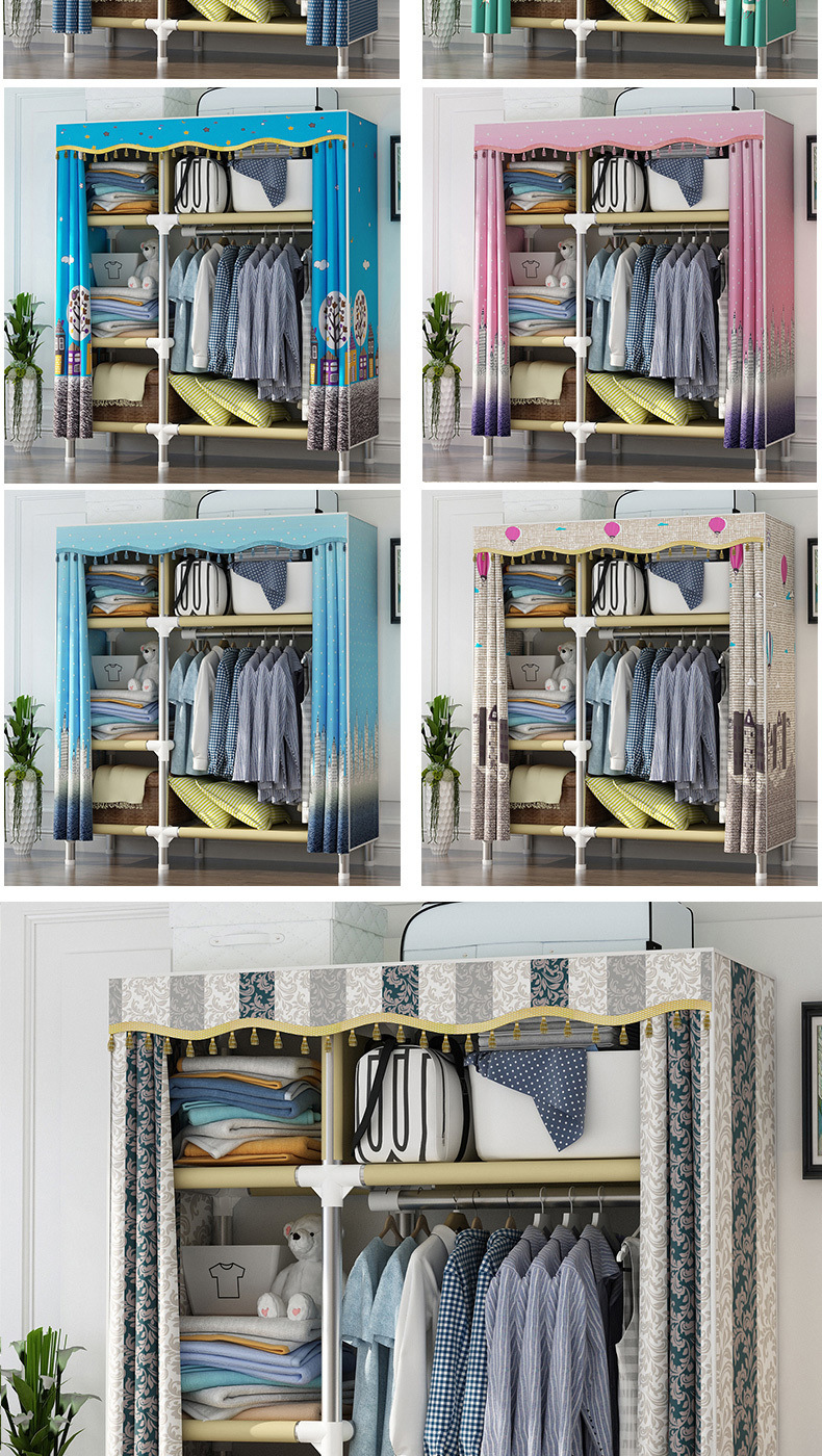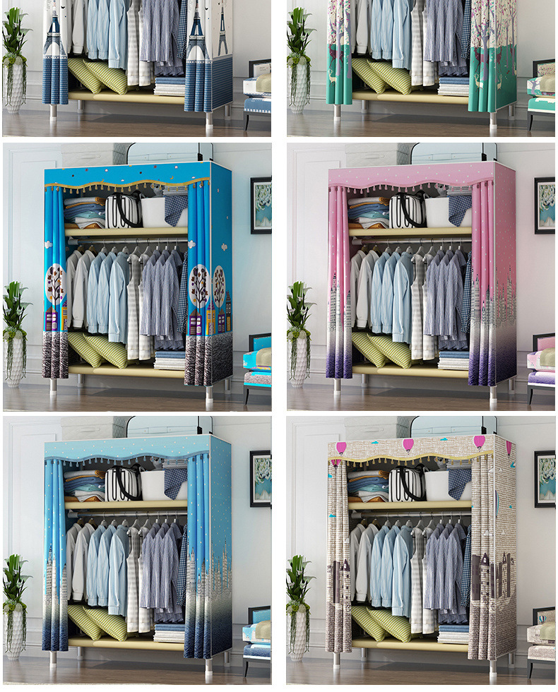 가정용 침실용 간이 천 옷장, 철제 튜브, 두껍고 강화된 옷장 수납 선반, 전철 임대 주택스토어 가기